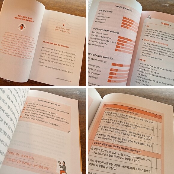 개인적으로 이 책은 재택근무 적응을 위한 리더가 읽어야 책이기도 하겠지만 회사에서 재택근무라는 제도를 운영하고 그 효과성에 대해 고민해야 하는 인사 담당자 및 실무자가 읽으면 좋을 듯하다. 이 책의 주요 챕터에는 삼성전자, sk텔레콤 등등 업종별 대표적인 회사의 재택근무 도입 현황에 대한 내용도 들어 있어다. 그리고 국내 기업 뿐만 아니라 해외기업의 사례도 간략하게 다루고 있어.. 다소 추상적인 내용으로 빠지기 쉬운 주제를 보다 구체적이고 실제적인 내용의 책으로 구성하고 있는 것이 인상적이었다.