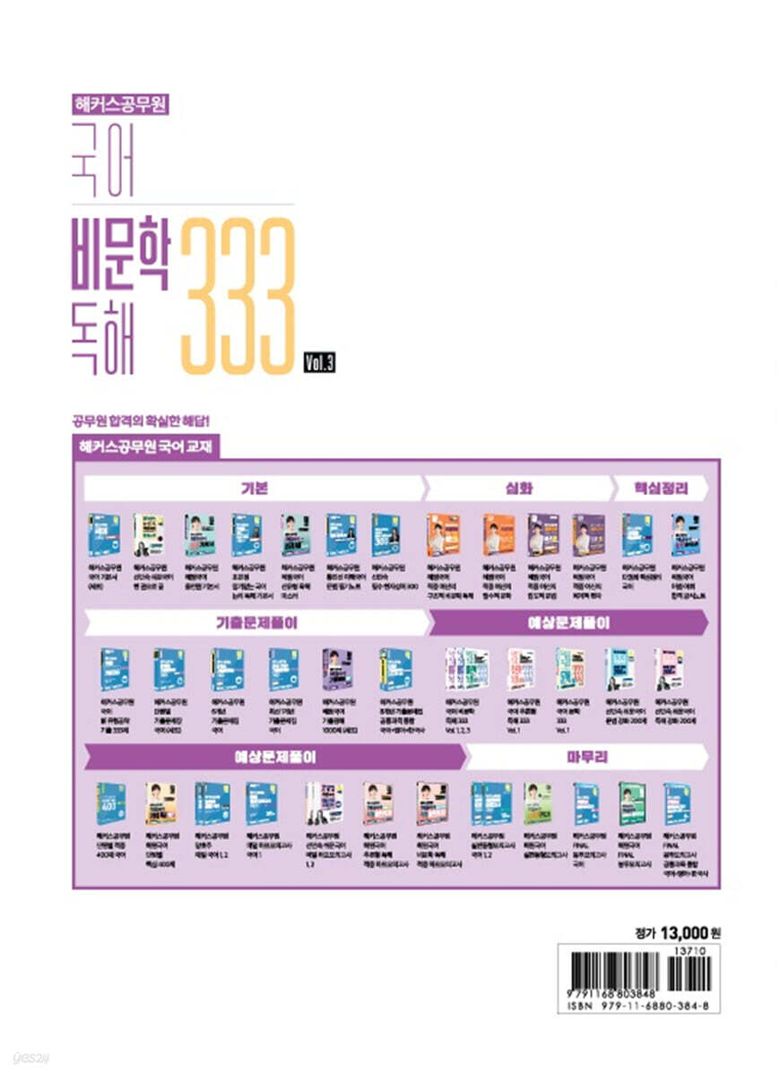 해커스공무원 국어 비문학 독해 333 Vol.3 상세 이동