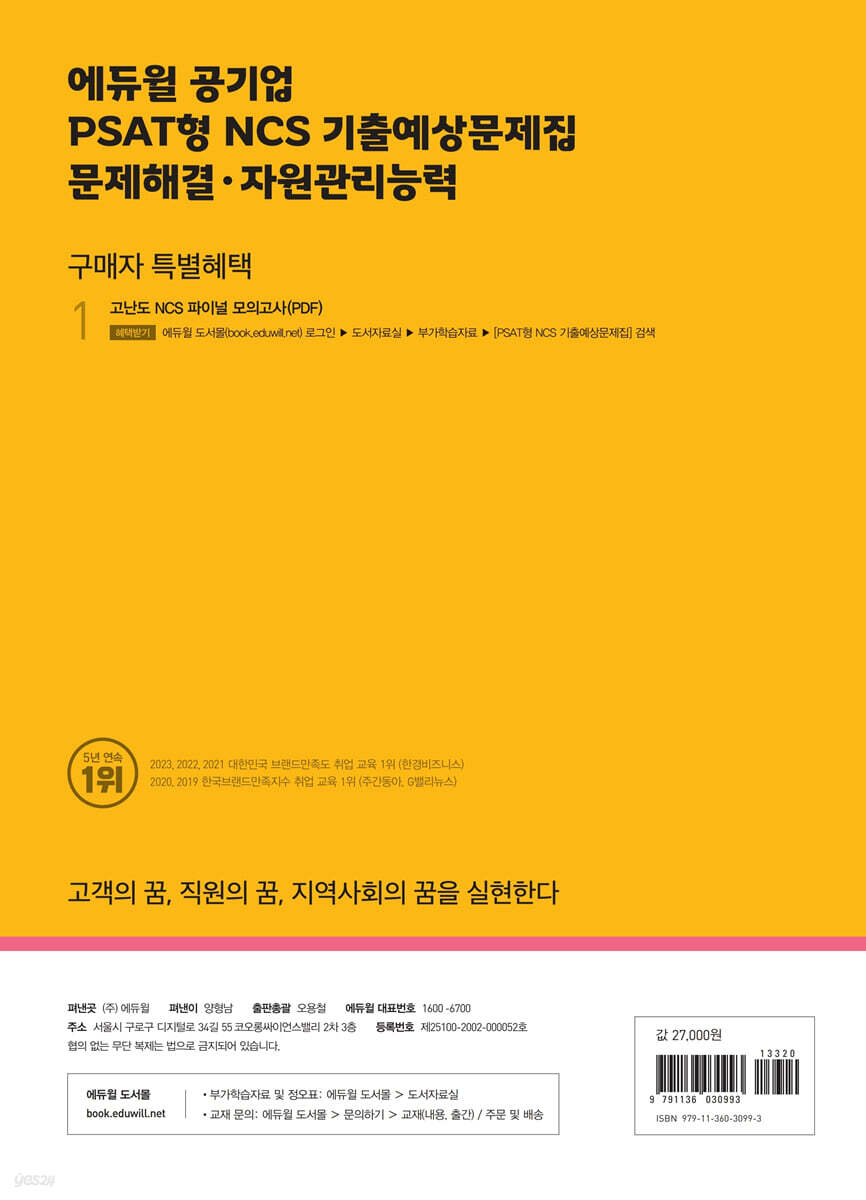 최신판 에듀윌 공기업 PSAT형 NCS 기출예상문제집 문제해결.자원관리능력 상세 이동