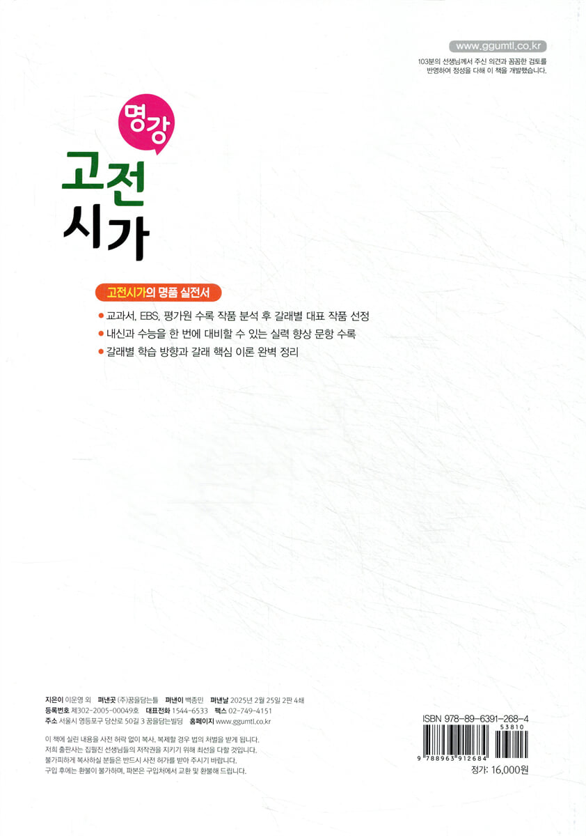 명강 고등 고전시가(명강 문학 시리즈) 상세 이동