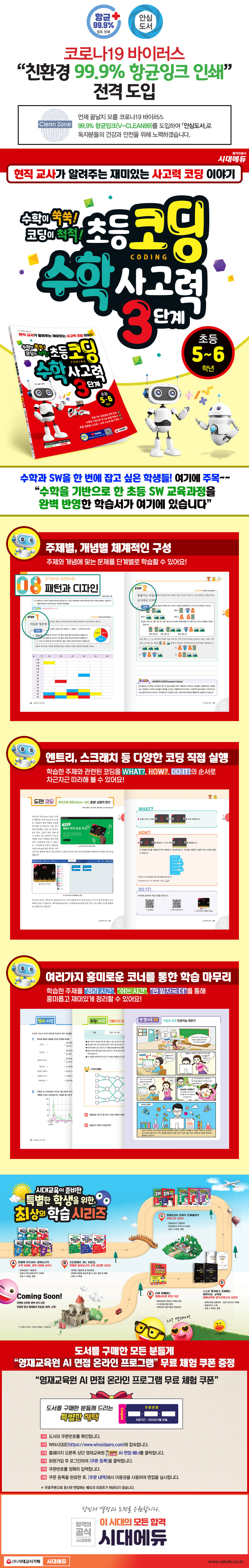 요즘 이 단어들을 빼놓고 미래 사회에 대해 이야기하기란 쉽지 않습니다. 인공지능이 일상 곳곳에 스며들고, 점점 더 많은 사람들이 코딩에 관심을 가지고 있습니다. 또한, 최첨단 융합기술이 여러 매체에서 화려하게 소개되고 있습니다. 기술의 발전에 따라 우리 사회의 구조도 이전과는 다른 모습으로 변화하고 있습니다. 앞으로 10년, 20년, 30년 뒤 우리는 어떤 세상에 살고 있을까요? 기술은 계속하여 발전하고, 그에 따라 사회는 끊임없이 변화합니다. 이러한 변화무쌍한 미래 사회에 적응하기 위해 우리는 어떻게 해야 하고, 어떤 능력을 길러야 할까요? 2015 교육과정에서는 SW 교육(소프트웨어 교육)이 도입되고 있습니다. 미래 사회를 대비한 현재의 소프트웨어 교육은 ‘정보와 컴퓨팅 소양을 갖추고 더불어 살아가는 창의ㆍ융합적인 사람’을 기르고자 합니다. 여기서 창의ㆍ융합적인 사람은 자신이 가진 ‘컴퓨팅 사고력’을 활용하여 여러 문제를 해결할 수 있는 창의ㆍ융합적 능력과 협력적 태도를 가진 사람입니다. 사고력이란 무엇이고 어떻게 기를 수 있을까요? 사고력을 기르기 위해 우리는 내가 알고 있는 지식을 동원하여 문제를 해결하는 과정을 거쳐야만 합니다. 문제를 구조화하고, 추상화하고, 분해하고, 모델링 해 보는 과정을 거치며, 문제 해결에 필요한 알고리즘을 구합니다. 문제를 해결하기 위해 알고리즘을 적용하고 수정하는 과정에서 사고의 세계는 끊임없이 확장됩니다. 이 책은 코딩의 개념이 살며시 녹아든 창의사고 수학 문제들을 학생들이 풀어 보면서 사고력을 기르는 것을 궁극적인 목표로 삼고 있습니다. 문제에는 컴퓨팅 시스템, 알고리즘, 프로그래밍, 자료, 규칙성 등이 수학과 함께 녹아 들어 있습니다. 다양한 문제를 해결해 보는 과정에서 사고력이 자라나는 상쾌한 자극을 느껴 보세요. 문제에 대해 고민하고, 해결을 시도하고, 방법을 수정하고, 완성하며 여러분의 사고력 나무가 쑥쑥 자라 미래 사회 그 어디에서도 적응할 수 있는 든든한 기둥으로 자리매김하기를 바랍니다. |