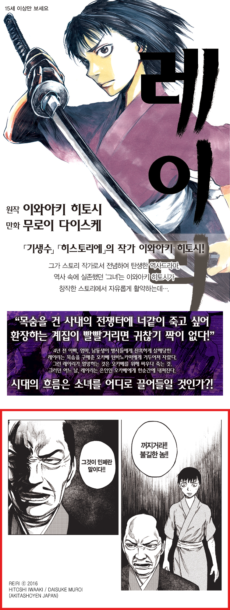 쓰치야 소조. 뛰어난 검호이며, 가이·다케다가의 중신이기도 한 이 사내가, 오다 노부나가에게 대적하는 당주·다케다 가쓰요리의 명령을 전하기 위해 고야마 성을 찾아왔을 때, 레이리의 운명은 크게 움직이기 시작한다! 소녀를 움직이게 하는 분노, 아픔. 갑작스러운 이별─── 패권을 다투는 다케다와 오다의 사투! 충격적인 만남이 레이리를 어지러운 세상의 대하로 끌어들인다! |