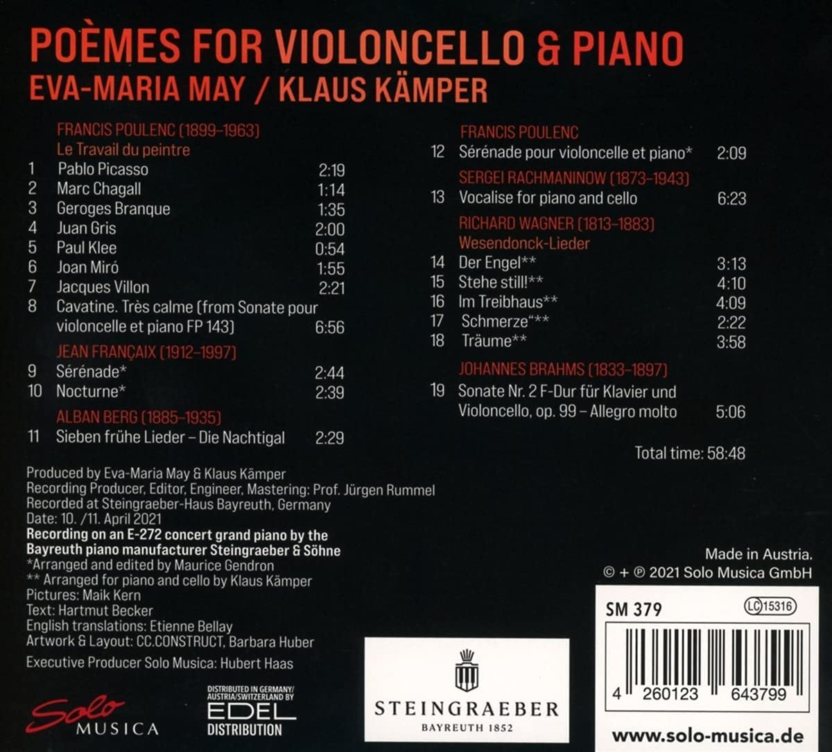 Klaus Kamper / Eva-Maria May 첼로와 피아노를 위한 시 (Poemes for Violoncello and Piano)