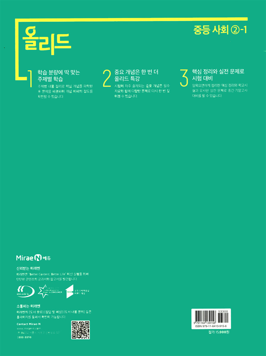 개념 잡고 성적 올리는 필수 개념서, 올리드 중등 사회 ②-1