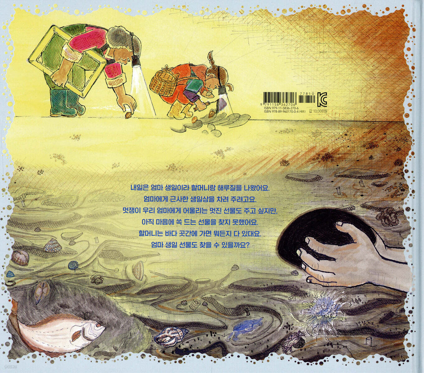 내일은 멀리서 일하는 해랑이네 엄마가 집에 오는 날입니다. 내일이 바로 엄마 생일이거든요. 해랑이는 생일 선물 때문에 고민이 많습니다. 멋쟁이 엄마에게 어울리는 멋진 선물을 주고 싶은데, 마땅한 것이 떠오르질 않는 까닭이지요. 할머니를 따라 읍내에도 나가 보았지만, 이거다 싶은 것은 보이지 않습니다. 잔뜩 풀이 죽은 해랑이와 달리, 할머니는 한껏 들뜬 얼굴로 장을 봐서 돌아옵니다. 마치 바라고 바라던 새 장난감을 손에 넣은 아이 같은 얼굴이지요. 그런데 할머니가 바리바리 싸안고 온 물건 중에 해랑이 엄마 선물은 없습니다. 온통 바다에 나갈 때 쓰는 물건들뿐이지요. 그중에는 해랑이의 물옷도 있습니다. “바다 곳간에 가면 뭐든 다 있다.” 할머니의 호언장담에 해랑이는 긴가민가하면서도 할머니를 따라 첫 해루질에 나섭니다. 보름달이 휘영청 밝은 밤바다에는 정말 온갖 것들이 다 있습니다. 꼬물대는 생물들을 탐색하는 재미에 엄마 생일 선물도 까맣게 잊을 지경입니다. 조개도 가지가지 많기도 합니다. 조금쯤은 욕심을 부려 볼 법도 한데, 해랑이는 “딱 필요한 만큼만 잡자. (…) 그래야 바다 곳간이 비질 않는다.”는 할머니 말을 잘도 지킵니다. 아니, 할머니보다 더 열심히 지키지요. 할머니가 알이 통통하게 밴 주꾸미를 줍자, 냉큼 낚아채 바다에 놓아 주기까지 합니다. “어린 고기는 놔줘야 한다면서요. 그럼 알도 놔줘야지요.”라면서 말이지요. 그나저나 엄마 선물은 언제 찾으려는 걸까요? 정말 찾을 수는 있는 걸까요? 해당화를 닮은 할머니가 들려주는 자연과 더불어 사는 법 『밤바다로 해루질 가요!』는 조혜란 작가가 오랫동안 독자들의 사랑을 받아 온 〈할머니 어디 가요?〉 시리즈에 이어 새롭게 선보이는 우리 시대 할머니와 어린이 이야기입니다. 쪽머리 할머니와 ‘옥이’라는 조금 예스러운 이름을 가진 어린이 대신, 파마머리 할머니와 ‘해랑’이라는 요즘 어린이를 불러내 자연과 더불어, 이웃과 더불어 살아가는 이야기를 들려줄 생각이지요. 조혜란 작가의 ‘할머니’는 자연의 변화를 온몸으로 겪으며 살아왔고 오래지 않아 자연으로 돌아갈, 자연에 가장 가까운 사람입니다. 긴 세월 삶의 풍파를 겪으며 복잡하고 모난 부분이 깎여 나가 어린이처럼 단순하고 둥글어진 사람이기도 하고요. 그런 할머니가 이끄는 대로 산으로, 들로, 바다로 다니다 보면 멀어졌던 자연이 한층 가깝게 다가듭니다. 사람은 혼자서 살아갈 수 없다는 사실을 새삼 깨닫게도 되지요. 할머니와 해랑이의 첫 나들이가 ‘해루질’인 것은, 작가가 어린 시절을 보냈고 다시 돌아가 사는 곳이 바로 서해안 지역인 까닭입니다. 갯벌에서 조개 줍는 어린 일꾼들을 관찰하고 기록하던 어린이가 자라, 바닷가 마을에서 토닥거리며 살아가는 할머니와 그 손주들을 관찰하고 기록하는 작가가 된 것이지요. 작가는 반세기가 다 되어가는 지금도 제 아버지 경운기 소리를 귀신같이 알아채고 조개를 줍다 말고 달려가던 어릴 적 친구들의 모습을 또렷이 기억합니다. 고사리손으로 주워 모아도 살림에 쏠쏠히 보탬이 될 만큼 조개가 지천이던 그 시절 갯벌과 함께 말이지요. 조혜란 작가는 자신이 느꼈던 갯벌의 아름다움과 풍요로움을 어린이들도 함께 느끼길 바라며 이 책을 쓰고 그렸습니다. 아울러 ‘해루질’이라는 전통 어업 방식을 통해 자연과 더불어 사는 법-꼭 필요한 것을 꼭 필요한 만큼만!-을 전하려 했습니다. 어린이들이 이 책을 보면서 저만큼 멀어진 자연을 새롭게 ‘발견’하기를 바라 봅니다. |