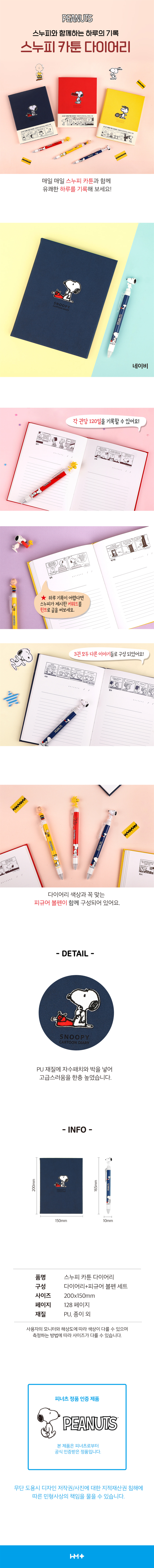 잔잔한 감동과 웃음이 있는 스누피 카툰 다이어리 3종 출시! 〈피너츠〉는 반세기가 넘는 시간 동안 전 세계 사람들의 사랑을 받아온 애니메이션이다. 엉뚱한 몽상가 스누피와 그의 주인 찰리브라운, 다소 까칠하지만 반전 매력의 소유자 루시, 꼬마 철학가 라이너스까지, 피너츠의 등장인물들은 하나하나 사람들의 기억에 남을 만큼 개성만점의 사랑스러운 친구들이다. 『스누피 카툰 다이어리』는 저자 찰스 슐츠가 오랜 기간 동안 연재한 피너츠 코믹 스트립에서 각 캐릭터들의 성격이 잘 드러난 에피소드로 구성하였다. 한 컷짜리 짧은 만화 속에 잔잔한 감동과 웃음이 섞여 있고, 예상치 못한 결말의 진한 여운이 두고두고 뇌리에 남아 있다. 이것이 전 세계인의 마음을 훔친 피너츠만의 사랑스러운 매력이다. 다이어리의 매 페이지마다 피너츠 친구들의 일상을 카툰 형식으로 담았고, 그 아래 나의 하루를 기록할 수 있도록 구성하였다. 또한 스누피, 찰리브라운, 우드스탁의 피규어가 달린 귀여운 펜이 함께 구성되어 피너츠 펜들에게 좋은 선물이 될 것이다. |
