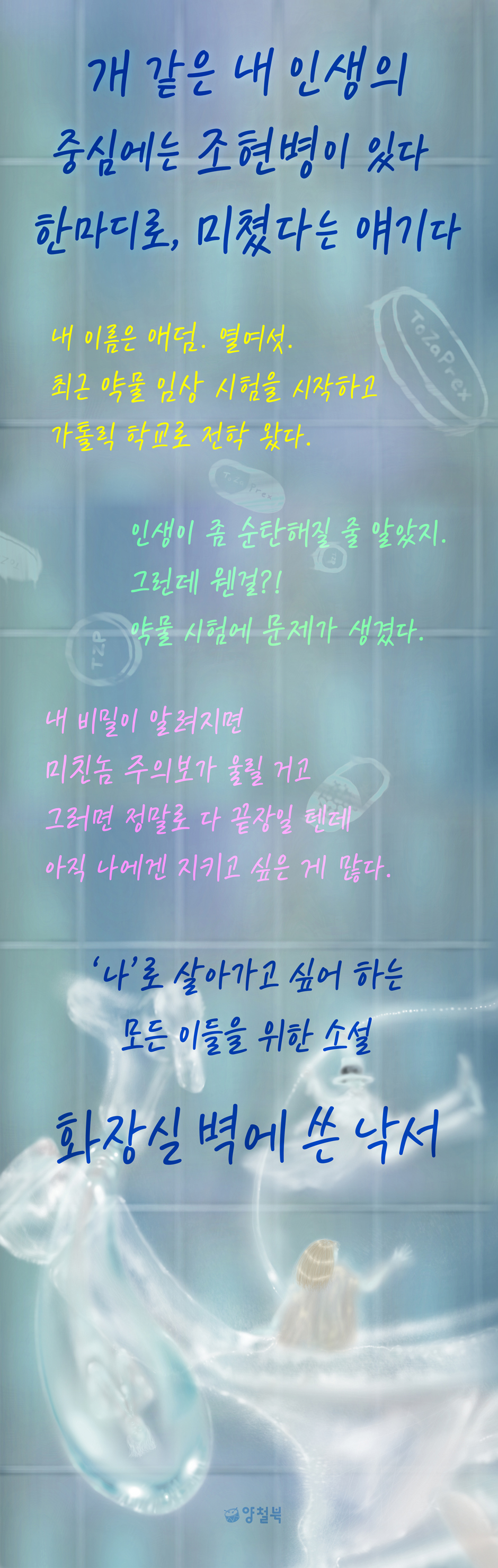 흰 토끼를 따라 이상한 나라로 간다... 조현병이 있는 열여섯 소년 애덤의 삶은 순탄치 않다. 애덤의 소원은 평범해지는 것이다. 환각 같은 거 보지 않고, 남들처럼 성적이나 외모 걱정을 하는 십 대로 살았다면 좋겠다고 말이다. 애덤에겐 몇 가지 변화가 생긴다. 약물 임상 시험에 참여한다. 애덤은 상담 시간에 말을 하지 않는 대신 할 말을 기록으로 남긴다. 비슷한 시기 애덤의 새로운 생활이 가톨릭 학교에서 시작된다. 그런데 여기에서의 생활, 평탄하지만은 않을 것 같다. 첫날부터 등교 도우미랍시고 있는 녀석은 재수 없게 굴질 않나, 엄마들이 잡은 ‘놀이 약속’ 때문에 딱히 생각도 없었던 애랑 테니스를 치게 된다. 그리고 마야. 로봇 같은 마야에게 점점 빠져들며 관계가 깊어진다. 새아빠는 전처럼 애덤을 친근하게 대하진 않지만, 썩 나쁘지 않다. 신약은 생각보다 효과가 좋아서 환각을 봐도 예전과 달리 알아차릴 수 있게 된다. 약발 굿! 이대로라면 남들처럼 평범한 나날을 살 수 있을 것 같다. 비록 여자 친구에게도 자신의 비밀을 털어놓을 수 없고, 새로 태어날 동생에게도 든든한 존재가 되어 줄 수 없지만. 그런데 생각지도 못했던 일이 일어난다. 의료진은 애덤이 약물에 저항성을 보여 적합한 시험 대상이 아니라고 판단하고 복용량을 줄이기로 한다. 기다리던 무도회를 앞두고 애덤은 고민에 빠진다. 가족은 무도회에 가지 말라고 말리지만 애덤은 무도회에서 평범한 사람처럼 춤추고 싶다. 애덤은 가지고 있던 약을 몽땅 삼키고 무도회에 간다. 그리고 그곳에서 애덤이 그동안 숨겨 왔던 비밀이 폭로되고 만다. 나를 둘러싼 세상이 무너지는 걸 그저 바라볼 수밖에 없는 심정을 누가 알까? 병 너머 ‘사람’을 본다면 ‘남’의 이야기가 아닌 ‘우리’ 이야기 조현병은 100명 중 1명이 걸리는 정신 질환이다. 그러나 병의 낙인과 선입견은 여전하다. 조현병에 관한 자극적인 뉴스는 주기적으로 접하지만, 우리는 조현병이 어떤 병인지 잘 모른다. 그러다 보니 막연한 두려움이 앞선다. 사람마다 신체적·정서적 반응은 다르겠지만 가끔 우리는 자신이 남들과 다르다고 생각하기도 한다. 사회에서 ‘정상’이라고 불리는 선을 하루에도 몇 번이나 넘나든다고 느낀다. 애덤처럼 환각을 보거나 누군가 의도적으로 자기를 해치려 든다고 생각할 수도 있다. 또는 혼자서 갑자기 비명을 지를 수도 있고, 대중교통에서 숨 막힐 듯한 공포를 느낄 수도 있다. 친구가 아무 말을 하지 않고 있는데도 나를 비난하는 것 같은 공포를 느끼기도 한다. 그럴 때면 마음에서 이런 목소리가 들리는 듯하다. 너한테는 문제가 있어, 너는 비정상이야, 다른 사람과는 달라……. 애덤이 다니는 가톨릭 학교 화장실에는 이런 낙서가 적혀 있다. 각각 다른 사람이 쓴 낙서 같지만 마치 댓글처럼 묘하게 연결되는 문장이다. 예수님은 당신을 사랑합니다. 호모가 되지 마세요. ‘예수님은 당신을 사랑합니다’는 기본적으로 조건 없는 수용을 뜻하지만, ‘호모가 되지 마세요’는 배척을 담고 있죠. 모순덩어리인 우리네 삶과 마찬가지로 부딪치는 문장인 거예요. 희망을 주는 말과 빼앗는 말. 너 자신이 되어라. 다른 건 다 괜찮은데 그것만 빼고. _본문 269쪽 삶에 큰 방해물이 있는 것 같을 때 우리는 그것을 제거하고 싶은 충동을 느낀다. 하지만 그 방해물조차 우리를 이루는 일부라면, 어떻게 해야 할까? 애덤은 환각을 보고 듣는다. 환각은 심리 상태를 반영한다. 어떤 환영은 늘 애덤의 옆에 있으면서 애덤을 걱정하고, 어떤 환영은 시비를 걸고 싶을 때 나타난다. 환영을 반기지 않던 애덤은 어느 순간 환영을 ‘상상의 친구들’이라고 부르기 시작한다. 애덤은 이렇게 이야기한다. “저는 이제 그들을 환영이라고 부르지 않아요. 왠지 불공평하게 느껴져서요.” 무언가를 구태여 더하거나 빼지 않아도, 우리 자신으로 살아갈 수도 있다는 용기를 애덤을 통해 얻는다. 평범해지고 싶어 하는 애덤의 이야기를 가만히 따라가다 보면 어느새인가 애덤이 가진 욕망과 우리가 가진 욕망이 크게 다르지 않다는 걸 알게 된다. 그리고 애덤의 이야기가 비단 조현병이 있는 소년의 이야기인 것뿐만 아니라 우리 모두의 이야기라는 걸 안다. 애덤의 이야기를 읽으면서 우리가 공감하고 덜 외롭다고 느낄 수 있는 이유다. 애덤은 사회가 흔하게 요구하는 ‘착한’ 인물은 아니다. 꼰대 같은 사람들한테는 저렇게 말해도 되나 싶을 정도로 비아냥거리고, 상담하는 박사님의 머리 스타일을 대놓고 지적하는 등 솔직하다. 그러나 그런 애덤의 성격이 오히려 더 매력적으로 다가온다. 소설은 애덤을 포장하지 않고 있는 그대로 그려낸다. 섬세하면서도 유쾌한 이 소설은 이야기의 힘으로 몰입력 있게 독자를 끌어당긴다. 나 자신으로 살아가는 게 외롭다고 느끼는 모든 이들을 위한 소설 줄리아 월튼은 “자신의 문제로 어려움을 겪고 있는 독자들이 애덤의 이야기를 읽고 조금 덜 외로웠으면 좋겠다”고 인터뷰에서 말했다. 많은 순간 삶은 우리가 원하지 않았던 풍경을 보여 준다. 애덤처럼 환각을 볼 수도, 혼자라고 느낄 수도 있다. 온전히 자기 자신을