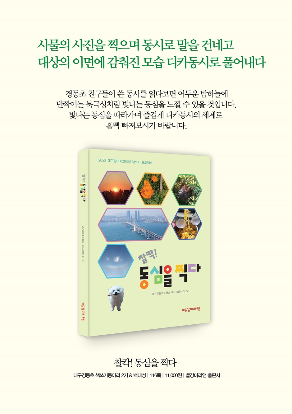 찰칵! 동심을 찍다는 2022년 대구광역시 책쓰기 프로젝트 우수도서로 선정된 도서이다.