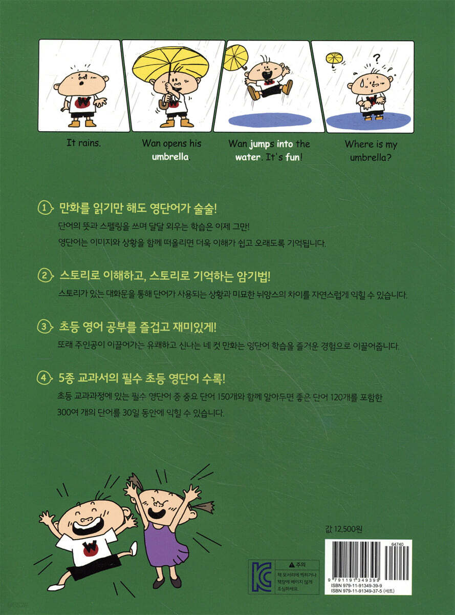 2 스토리로 이해하고, 스토리로 기억하는 암기법! 스토리가 있는 대화문을 통해 단어가 사용되는 상황과 미묘한 뉘앙스의 차이를 자연스럽게 익힐 수 있습니다. 3 초등 영어 공부를 즐겁고 재미있게! 또래 주인공이 이끌어가는 유쾌하고 신나는 네 컷 만화는 영단어 학습을 즐거운 경험으로 이끌어줍니다. 4 5종 교과서의 필수 초등 영단어 수록! 초등 교과과정에 있는 필수 영단어 중 중요 단어 150개와 함께 알아두면 좋은 단어 120개를 포함한 300여 개의 단어를 30일 동안에 익힐 수 있습니다. |
