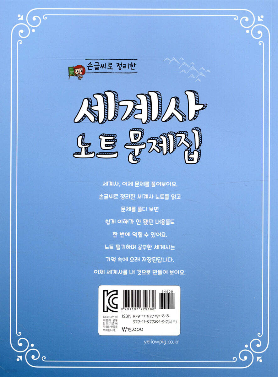손글씨로 깔끔하게 정리한 표와 지도, 사진 자료까지 1권에서는 고대부터 중세까지, 2권에서는 근세부터 현대까지 세계의 역사를 다룹니다. 두 권으로 세계사의 흐름을 잡아주면서 핵심이 될 만한 정치·사회·문화 부분을 다루고 있어서 이 책만으로도 세계사 공부의 기반을 잡을 수 있어요. 그뿐만 아니라 1권과 2권에서 익힌 것들을 풀어보는 문제집도 있어요. 문제집을 풀다 보면 조금 헷갈렸던 것들도 명확하게 알 수 있고, 보다 중요한 포인트를 찾아낼 수도 있어요. 1권과 2권에서 공부한 것을 복습한다고 생각하면 된답니다. 역사 속 사건이 일어난 배경과 원인, 과정과 결과를 조곤조곤 이야기해 주는 듯해서 쉽게 접근할 수 있습니다. 중간 과정의 적절한 설명 없이 요약된 역사 지식은 무조건 암기라는 괴로움을 감수해야 자기 것이 됩니다. 그러나 이 책은 외우지 않고도 왜 그런 일이 일어나게 되었는지 편안하게 이해할 수 있도록 사건과 사건 사이의 과정을 알려 주고 있습니다. 지문에서 설명하거나 미처 다루지 못한 내용은 중간중간 노트 필기 코너로 정리했어요. 지문을 읽고 이해한 내용을 손글씨로 쓴 표와 필기, 지도를 통해 수월하게 이미지화하고, 편안하게 세계사의 흐름과 구조로 체계화하도록 도와줍니다. 이 책의 역사 용어들을 정리하고 노트 필기를 따라 해 본다면 효과적으로 세계사 공부를 할 수 있을 거예요. 또한 문화재와 유적은 여러 사진 자료로 만날 수 있고, 중등 역사책에서 다루고 있는 현대사 부분까지 다루고 있어서 초등뿐만 아니라 예비 중학생과 중등 내신 대비용으로도 적합하답니다. |