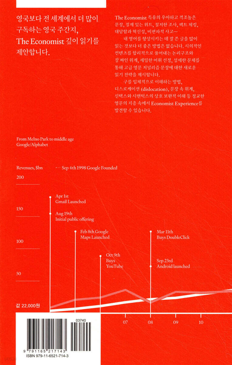 아마존, 애플, 줌, 위키피디아, 넷플릭스, 디즈니, 텔레그램, 마이크로소프트, 구글, 테슬라 등 시대를 대표하는 글로벌 빅테크 기업 관련 아티클 20개 큐레이션을 통해 시의성에 통찰을 보탠 저널리즘의 관점에서 테크 비즈니스 산업 문화를 이해합니다. The Economist (사용 원문 기사) 1843년 창간된 영국 주간지로 세계 동향, 비즈니스, 금융, 과학 및 테크놀로지, 문화, 사회, 미디어, 예술 등의 쟁점을 객관적이고 대담한 스탠스로 보도하는 것으로 유명하다. 우리를 앞으로 나아가게 하는 지성과 그 전진을 가로막는 보잘 것 없고 옹졸한 무지 사이의 맹렬한 논쟁에 참여(Take part in a severe contest between intelligence, which presses forward, and an unworthy, timid ignorance obstructing our progress)할 것을 그 기조로 삼는다. 또한, 각 이슈마다 일관성 있고 공통된 목소리를 전달하는 것이 저널리스트 개인의 정체성보다 중요하다는 이유로 매 기사에 기자의 바이라인을 두지 않는다. 이런 이유로 대부분의 아티클에서 담백하면서도 절제된 위트와 정교한 어휘 선택이 돋보여 “classically British”한 특징을 발견할 수 있다. 빌 게이츠, 헨리 키신저, 앙겔라 메르켈 총리 등 전 세계 정재계 인사들이 즐겨 읽는 전문 주간지로 2018년 12월 기준 연간 170만 부의 판매부수를 기록하고 있다. 이코노미스트의 독자 평균 연령은 38세로 새로운 독자의 취향 발굴에 있어 그 혁신성을 더해가고 있다. 독자 분포는 80% 이상이 글로벌 독자로 구성될 만큼 영국 이상의 국제적 관점에서 쟁점을 조망한다. 특별히 맥도날드의 빅맥 버거 판매 가격을 사용하여 각 국가별 교환 비율을 소개한 빅맥 지수를 쓴 것으로도 유명하다. 저자의 말 구는 절이다. 절의 근본 모형 두 가지를 상기하면서, 불완전한 구 구조를 온전한 절로 만들어 보면, 의미도 명료해질 뿐더러, 글쓴이가 뭘 빼먹으면서 동시에 뭘 강조하는지도 파악이 돼서, 독해가 훨씬 나아질 수 있다. 쉽지 않은 작업이지만, 분명 보상이 있을 것이다. 구의 연접 1번: 명사-명사(복합 명사) 구의 연접 2번: 소유격-명사 구의 연접 3번: 형용사-명사 구의 연접 4번: 명사-전치사(연결사)-명사 ... ‘중첩과 얽힘’은 쉽다. (일상어 수준으로만 이해해도 되겠다.) 여기서 자연 언어의 모호성이 등장하고, 인공 지능의 언어 처리가 왜 굼뜬지도 미루어 짐작할 수 있다. 우리의 인지, 그리고 그 결과물인 문장에 ‘중첩과 얽힘’이 발생한다면, 그 대당항으로 호응이 미흡하거나 결락이 생긴 부실한 문장도 무수히 많을 텐데, 이를 파악할 수 있는 개념으로는 디스로케이션(dislocation)을 제안한다. |