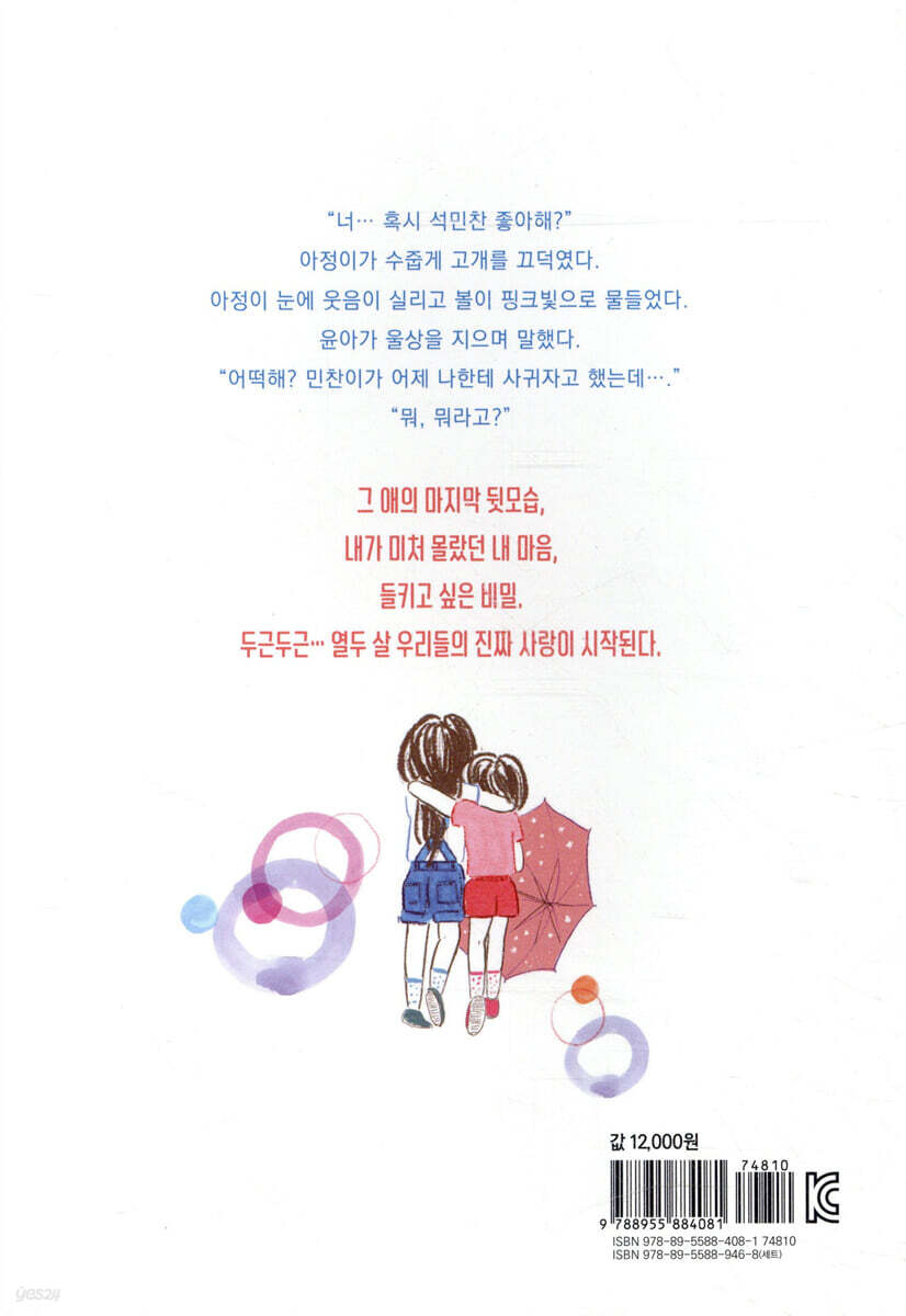 나는 기정이를 좋아했다. 특별히 눈에 띄는 아이는 아니었지만 조용하면서도 어른스럽고, 다정하고, 글도 잘 쓰는 기정이를 나는 남몰래 좋아하고 있었다. 기정이가 쓴 글을 읽으며 기정이가 어떤 아이인지 상상해 보고, 기정이의 생일도 기억할 정도로 관심이 있었다. 그런데 기정이와 가까워지기도 전에 나는 기정이에게 엄청난 오해를 사게 된다. 아빠의 사업 실패로 어려움에 처한 기정이 가족에게 내가 큰 해를 입혔다는 말도 안 되는 오해였다. 다짜고짜 우리 집으로 찾아온 기정이는 온 힘을 다해 미움과 서러움을 표현했고, 나는 변명도 제대로 하지 못한 채 기정이를 떠나보내야 했다. 예상대로 기정이는 다시 만날 수 없었고, 그 애의 뒷모습은 오래도록 아련하게 남아 있다. 삶의 무게를 감당하고 있는 한 아이와의 짧은 인연을 감성적으로 그린 이야기이다. 「여친과 여사친 사이」 나와 시훈이는 유치원 시절부터 친한 단짝 친구이다. 동생처럼 어리게만 느껴졌던 시훈이는 어느새 키도 훌쩍 크고 여자아이들에게 제법 인기도 있다. 그런 시훈이가 학교의 다재다능한 유명 인사 루아와 사귀기 시작했다. 나는 어리숙한 시훈이에게 연애 상담과 세세한 코치까지 해 주게 된다. 그런데 시훈이와 나의 사이가 거슬렸던 루아는 우리 사이를 갈라놓으려고 하고, 시훈이는 쩔쩔매기 시작한다. 그제야 나는 시훈이를 좋아하는 진짜 내 마음을 깨닫게 된다. 나는 시훈이에게 뒤늦게 마음을 고백하지만, 시훈이는 루아를 진심으로 좋아하고 있다. 나는 그만 시훈이를 놓아 주려고 한다. 오랜 친구를 어느샌가 이성으로 좋아하는 자기 마음을 제대로 들여다보고, 당당하게 표현하고, 또 상대방의 진심까지 받아들이는 요즘 아이들의 성숙한 모습을 세밀하게 보여 준다. 「비밀이 풀리는 순간」 윤아와 아정이는 둘도 없는 친구지만, 5학년이 되고 난 뒤 우정에 금이 갈 뻔한 일들이 일어난다. 아정이는 윤아가 동생처럼 소중하게 아끼는 인형을 빌려 가서 잃어버렸다. 윤아는 아정이가 이모한테 선물받고 한 번도 쓰지 않은 빨간머리 앤 우산을 빌려 가서 돌려주지 않는다. 그런 윤아와 아정이에게 어느 날 전학생 민찬이가 나타난다. 축구도 잘하고 피아노도 잘 치는 민찬이는 묘하게 두 아이의 마음을 잡아끈다. 아정이는 민찬이를 좋아하는 속마음을 윤아에게 털어놓는데, 그사이 민찬이는 윤아에게 고백을 해 버렸다. 윤아도 민찬이에게 호감이 있지만 마음을 결정하지는 못했다. 아정이와 윤아는 커플을 결정해서 애매한 삼각관계를 정리하려고 하지만, 그런 관계에 불편함을 느끼지 못하는 민찬이는 이대로가 좋다고 한다. 사랑만큼이나 깨지기 쉬운 우정, 우정만큼이나 간절한 사랑 이야기가 세 아이의 관계 속에서 펼쳐진다. 관계를 파고드는 ‘비밀’에 대해서도 한 번쯤 생각해 볼 수 있는 이야기이다. |
