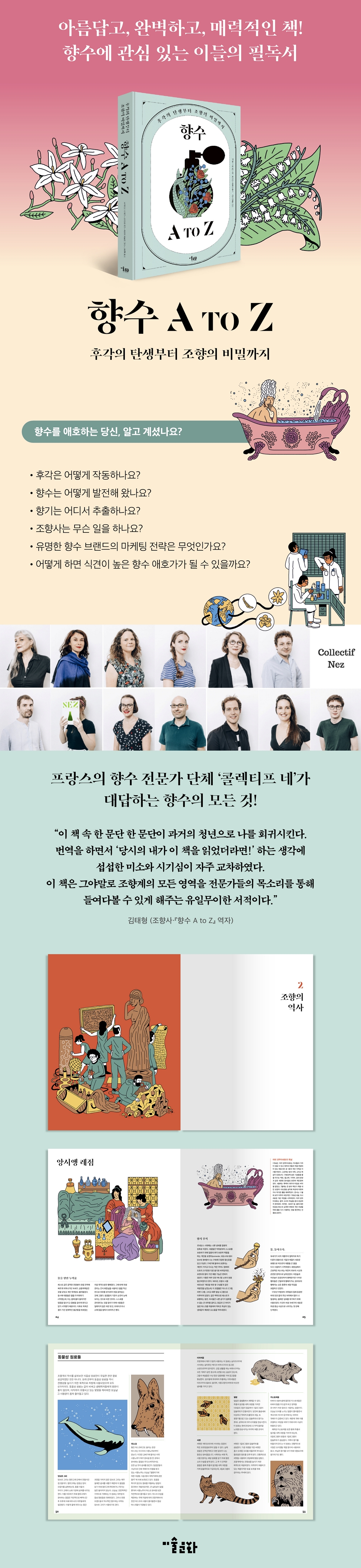 마음을 뒤흔드는 매혹적인 향까지. 조향이라는 섬세한 예술과 조향사의 손끝에서 탄생하는 또 다른 세계, 향수. 이집카 출신 조향사가 안내하는 향수의 모든 것 향수의 역사에서부터 새로운 향수가 탄생하기까지 우리가 모르고 있던 향수의 모든 것! 고대의 향수에서부터 현대의 향수까지 한 권으로 만나는 향수 고대부터 좋은 향기는 신성을 나타내는 표시였다. 인간은 자신의 몸에서 나는 향기와 다르게 향기로운 향을 신의 존재로 생각하고 성스럽게 생각했으며 경배해 마지않았다. 향수를 통해 좋은 향을 인간이 사용함으로써 인간은 신과 소통하고 신에 한 발짝 더 다가갈 수 있게 된 것이다. 향수는 인간이 신이 될 수 있는 변화의 힘을 품고 있는 것으로 생각되었다. 향수는 단순한 좋은 향기가 아니라 신과 인간을 이어주는 매개체였다. 향이 나는 나무와 송진을 신께 바치던 고대부터 본능적으로 좋은 향을 신성시 했고 제사장들만이 만들 수 있는 것이자 질병을 치료하는 치료제이기도 했다. 하지만 시간이 지날수록 향수는 대중에게 더욱 널리 퍼져나갔다. 중세시대에는 향수가 오직 종교적 목적으로만 사용되었지만 때로는 관습을 거스르는, 도발적인 분위기를 위해서도 기꺼이 향수를 사용했다. 점차 많은 사람들이 향수를 사용하면서 다양한 형태의 향수가 개발되고 향수를 제조하기 위한 각양각색의 방식 역시 개발되었다. 기술이 발달하면서 자연 추출물에만 의존하던 향수가 화학반응을 통해 서로 다른 화합물을 이용하여 수많은 향료를 만들 수 있게 되었다. 조향의 혁명이었다. 이로 인해 수많은 향료가 개발되었고 기계를 통한 대량생산이 가능해지자 다양한 브랜드와 디자이너들에 의해서 부흥기를 맞이했다. 과거부터 좋은 향을 위해서 지중해의 이탈리아에서 시작해 터키, 중동, 스페인, 이집트의 다양한 동물과 식물을 찾고 이들에서 향을 추출하기 위해 다양한 방법을 찾았다. 필요한 양만큼을 생산하는데 한계가 있는 천연 향료를 대신해 합성 향료를 만들기 위해 조향사들은 끊임없이 노력했다. 이 책에서는 우리가 익히 알고 있는 장미, 바닐라뿐만 아니라 베르가못, 자스민, 머스크 등 다양한 재료를 추출하기 위해 조향계가 어떠한 노력을 쏟아 부었는지 보여준다. 또 각 성분이 담고 있는 특징과 사용법을 알려주며 다소 복잡해 보였던 향의 세계에 독자가 천천히 스며들도록 돕는다. 조향사라는 직업은 직접 향을 다루기도 하지만 원료의 구입, 향의 분석과 평가 등 다양한 분야로 나뉘어서 일을 하고 하나의 제품을 위해 함께 노력한다. 브랜드와 제품, 마케팅을 위해 우리가 생각하고 해야 할 일은 무엇이며 어떻게 제품을 만들지 모든 과정을 예시를 통해 함께 하면서 마치 내가 향수를 만들어 내는 듯한 느낌을 받을 수 있다. 우리에게 익숙한 샤넬, 랑콤, 디올 같은 브랜드부터 넘버5, 끄세쥬, 아무르아무르, 아르페쥬 등 익숙한 브랜드와 제품이 등장한다. 익히 들어 알고 있는 제품들도 많은 조향사들이 수도 없이 처방전을 개량하고 향 샘플을 평가하는 모즈 과정을 거쳐 그만의 향적 특성을 지닌 향수로 탄생하였음을 우리는 이제야 알게 된 셈이다. 향수뿐만 아니라 그 뒤에 가려져 있던 향수 산업에 대해서도 한눈에 알 수 있는 교양서 이 책은 향수에 관심 있는 일반인이나 조향사 또는 디자이너를 꿈꾸는 사람들을 위해 향수의 역사, 향의 원료, 추출방식, 조향사가 되기 위한 방법, 향수를 생산하기 위한 과정, 향수가 탄생하기까지의 수많은 사람들의 노력을 담고 있다. 또 현장에서 일하고 있는 현직자들의 인터뷰를 통해 현장의 어려움, 현실, 생생함 등을 담아내고자 노력했다. 우리가 가볍게 뿌리는 향수의 무게가 그리 가벼운 것만은 아님을 알 수 있는 대목이다. 현대인에게 향수는 나 자신을 표현하기 위한 수단 중 하나이다. 수많은 향수 중에서 자신이 좋아하는 향이나 어울릴 것 같은 향을 찾아서 사용한다. 향수의 선택에 있어서 향기에 얽힌 역사와 원료의 생산과 추출 방법 그리고 조향사와 디자이너의 영감과 의도 역시 향수를 선택하는 데 있어서 하나의 새로운 기준점이 될 것이다. 책에서는 조향사의 손을 거친 향수가 제조 단계에 접어들고 각종 규제를 통과한 후, 어떤 방식으로 소비자에게 전달되는지 또 어떤 매장으로 가게 되는지 상세하게 설명하고 있다. 여기에 향수를 대중에게 알리기 위해 온라인 투자, 언론 홍보, 각종 판촉 도구와 같은 여러 가지 방법들을 설명하며 향수가 우리에게 오는 길을 소비자로서 함께 걷도록 돕는다. |