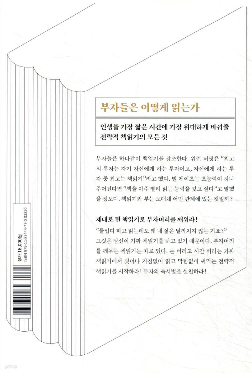 부자들이 없는 시간 쪼개 굳이 책을 읽는 이유 PART 1 자수성가 부자들이 털어놓은 부의 비결 부자되는 4가지 경로, 당신의 선택은? 자수성가 부자들의 필수 자격요건 3 부자들이 계속 일하는 진짜 이유 부의 원천, 지식에 투자하는 법 아무나 못 하는 부자의 습관 책을 2배 더 읽으면 연봉이 3배 더 는다 슈퍼리치들이 손꼽는 인플레시대 최고의 투자종목 돈 만드는 책읽기 5시간 규칙 PART 2 부자의 책읽기 200년의 비밀 자수성가 부자들의 200년 불변의 법칙 부자의 책읽기는 복리로 증식한다 부자들은 최고에게 배운다 매일 조금씩 더 똑똑해지는 경험 위대한 이들을 스승으로 모시고 하는 공부 부자의 생각머리 키우는 전략적 책읽기 읽을 줄 알아야 배울 수 있다 종이책 읽기의 놀라운 힘 멘토 텍스트 찾아내는 안목 키우는 법 매일 아침 종이신문 읽기는 기본 휴가 때 할 일은 책 읽는 일 지적 전투력을 기르는 딥리딩의 의미 부자들 책읽기에 없는 3가지 PART 3 책 속에서 돈을 찾아내는 문해력 키우기 워런 버핏이 질투한 무한학습자 체스키 거침없이 읽고 막힘없이 써먹어라 변화를 만들어내는 책읽기는 무엇이 다른가 읽는 대로 돈이 되는 문해력의 실체 문해력이 없으면 읽을수록 손해다 자기 머리로 생각하며 읽어라 의심하고 질문하고 반박하며 읽어라 자신의 억측을 점검하며 읽어라 팩트에 집중하며 읽어라 의미 단위로 끊어 읽어라 요약하며 읽어라 한마디로 요약하는 연습 PART 4 읽은 만큼 거둬들이는 아웃풋 독서의 기술 아웃풋이 나와야 책읽기가 완성된다 1권을 3가지로 아웃풋하기 나만의 언어로 다시 써라 쓰면서 읽는 아웃풋 기술 7 책값 하는 리뷰를 써라 똑똑한 양떼 벗어나는 삼찰 포맷 지식의 서랍을 활용하는 법 알리바이는 흔적일 뿐 증거는 아니다 따라 쓰기의 진짜 기술 PART 5 월급쟁이 부자되는 책읽기 프로젝트 MBTI 타입으로 보는 책읽기 유형 투자하는 책읽기, 소비하는 책읽기 책읽기도 연습과 훈련이 필수다 부자처럼, 도둑처럼 읽어라 월·부·책 프로젝트 1년 프로그램 혼자 읽어라 주도적으로 읽어라 멘토북을 읽어라 무슨 책이든 50쪽은 읽어라 매혹적인 목표를 가져라 나만의 주제를 발견하는 법 책읽기가 재밌어지는 부킷리스트 만들기 부자되는 책읽기 골든타임의 규칙 내가 부자되는 시간은 언제일까 책읽기에 집중하는 규칙과 준비 책읽기를 가시화하라 서점에 가는 것만으로 얻을 수 있는 것들 닫는 글 인생의 모든 답은 책 속에 있다 부록 세계적인 부자들이 고백하는 ‘내 삶을 바꾼 책’ 50 |