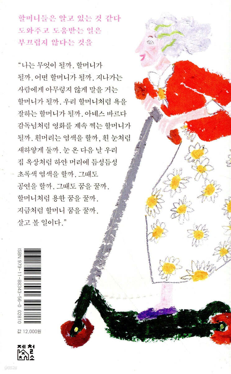 --- 「그 양반 얘기만 하면 울어」 중에서 할머니들은 잘 묻는다. 모르는 사람의 장바구니부터 잘 안 보이는 작은 숫자까지. 나는 그 질문들에 대답을 잘하는 사람이 되고 싶다. 나아가 질문을 잘하는 사람이 되고 싶다. 사회는 그 질문들에 대답을 잘 하는가? 김목인의 노래 〈대답 없는 사회〉가 떠오른다. “대답을 못 들은 사람들이, 길 위에 나와 있네.” --- 「우연히 만난 할머니들」 중에서 사회는 눈곱만 한 글씨로 눈곱만큼도 도와주지 않지. 문방구에 가서 확대를 하고, 다시 가위질을 해서 갖다 붙이는 엄마의, 할머니의 수고 비용은 어쩔 셈인가요. 약자는 알아서 하십쇼. 세상에, 엄마에게 노인이라는 한 카테고리가 더 붙어버렸다. 공인인증서, 홈택스, 인터넷뱅킹, 스마트폰. 세상은 점점 바뀌어가고 나도 적응이 힘들다. 그럴 때면 나는 세상 욕을 확 해버리지만 엄마는 자신에게로 활시위를 겨눈다. 무식하고, 이런 것도 못 하는, 할머니가 되어가는 자신을 탓한다. --- 「엄마가 할머니가 되어가고 있다」 중에서 할머니가 되고 싶은데 장애물이 참 많다. 또 당연히 안전한 할머니, 소외받지 않는 할머니가 되고 싶은데 그것은 더더욱 어려운 일이다. 여성 노인에 대한 성폭력 사건들을 사회는 어떻게 다루는가. 노인 빈곤에 대해 사회는 얼마나 나 몰라라 하는가. 폐지를 줍는 노인들, 고물상에 가는 노인들이 킬로그램당 얼마를 받으면서 살아가고 있는가. 내가 꿈꾸는 것은 그냥 할머니가 아니었나 보다. 친구들하고 다 같이, 안전하고, 빈곤하지 않은, 빈곤하더라도 혜택을 받아 빈곤에서 벗어날 수 있는 할머니를 꿈꾼다 --- 「내 꿈은 무사히 할머니가 될 수 있을까」 중에서 “까치산 할머니랑 같이 와야 한대.” 조연출님이 말했다. 아니 ‘까치산 할머니’가 누구지? ‘한예종 어머니’는 들어봤어도. 한예종 어머니라 하면 한국예술종합학교 영상원 영화 제작팀들이 어머님으로 많이 캐스팅하는 배우를 일컫는 말이다. 까치산 할머니는 그냥 까치산에 살아서 까치산 할머니라고 한다. 우리 영화에서는 엑스트라를 맡았다. 역할이 크고 작은 게 중요한가? 명백하게 배우 이름이 있을 텐데 왜 까치산 할머니라고 부르는 걸까. 지금 생각하면 좀 의문인데 그때는 왠지 멋있어 보였다. 그랜마 프롬 까치 마운틴. --- 「까치산 할머니」 중에서 ‘오뉴블’ 속 여자들은 사람을 죽이고, 때리고, 마약을 하고, 폭력적이고, 욱하고, 더럽고, 끔찍하다. 한 스탠드업 코미디언이 이런 말을 했다. “변호사, 의사, 우주 비행사를 떠올려보세요. 그중에 한 명이라도 여성이 있나요? (한두 명이 손을 들었다.) 좋네요. 자 그럼 마약중독자, 쓰레기, 성격파탄자를 생각해보세요. 한 명이라도 여성이 있나요? (아무도 손을 들지 않았다.) 제가 부수고 싶은 건 유리 천장뿐만 아니라 유리 바닥입니다.” 정확한 워딩이 다 생각이 나지 않아 다른 부분도 있을 것이다. 하지만 그 얘길 들었던 순간의 충격만큼은 생생하다. 맞다, 그러네. 어떻게 보면 여자를 악하지 않게 그리는 것도 납작하게 그리지 않는 방법 중 하나일 수 있겠구나. --- 「갱스터 할머니」 중에서 아무튼, 할머니라고 해서 새로운 것이 싫고 귀찮을 리 있나. 남편 밥, 아들 밥, 가족 밥을 차리는 인생이 지겹고 싫을 수는 있어도 삶 자체가 지겹지는 않을 것이다. 살 만큼 살았다는 말은 거짓말 같다. 배 터지게 밥을 먹어도 몇 시간 지나면 꼬르륵대는 뱃가죽처럼, 삶은 채워도 채워도 끝이 없을 것이다. 나는 재밌게 살고 싶다. 지겨운 것은 정류장도 제대로 표시 안 해놓은 느림보 마을버스뿐인 할머니가 되고 싶다. --- 「지겨워 지겨워」 중에서 농성장, 집회, 데모 참가자 하면 어떤 모습이 떠오르는가. 나는 조끼를 입고 머리에 띠를 맨 중년 남성의 이미지가 그려지곤 했다. 그 외의 모습은 잘 떠오르지 않았다. 하지만 현장에 다녀보니 수많은 여성들이, 중노년 여성 노동자들이 투쟁을 외치고 있었다. --- 「농성장의 할머니들」 중에서 〈노래하는 여자, 노래하지 않는 여자〉는 여성들의 연대에 관한 영화다. 이 영화 속 주인공은 여성운동을 이어가는데 낙태죄 폐지 운동을 할 때 외치는 구호가 있었다. “내 몸은 나의 것!(My body, my choice!)” 몇 년 전까지 여성들이 외치던 말과 언어만 달랐지 자막상 토씨 하나 다르지 않은 말이었다. 정말 느리게 변하는구나. 안 변한다고 말하고 싶지는 않아. 정말 정말 느리게 변하는구나. 그리고 정말 정말 정말 오래전부터 먼저 운동을 해온 여성들이 있구나. --- 「아무튼, 아녜스 바르다 1」 중에서 할머니에 대해서 이렇게 마음 놓고 푹 빠져 생각해볼 기회가 없었다. 언제나 너무 깊이 빠지면 그것이 눈물로 이어질까 봐, 더 큰 슬픔으로 이어질까 봐 중간에 차단막을 두곤 했다. 근데 막상 기억을 되짚어 또렷이 생각하려고 노력해보니 슬픔 너머의 감정들이 온다. 나는 이걸 무어라고 부를 수 있을까. --- 「나는 할머니 꿈을 꾼다」 중에서 |