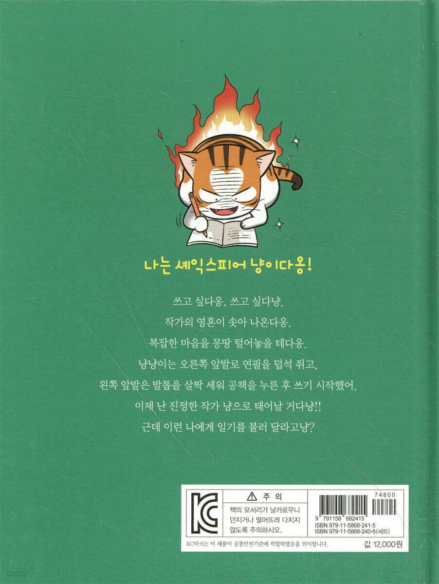 한우는 꼴도 보기 싫은 일기장을 마구 흔들었어. 그러다 그만 일기장을 놓치고 말았어. 일기장은 휘우웅 날아가 하필이면 산적 고양이의 코앞에 떨어졌어. 산적 고양이는 동그란 눈을 빛내며 한우를 노려보았어. 한우는 울상이 되었어. 산적 고양이는 오른쪽 앞발로 연필을 덥석 쥐었어. 왼쪽 앞발은 발톱을 살짝 세워 일기장을 넘겼어. 제목 : 일기를 왜 쓸까? 한우가 써 놓은 일기 제목을 보자마자 산적 고양이의 머릿속에 일기 내용이 줄줄이 떠올랐어. ‘이상하다냥. 쓰고 싶어서 앞발이 근질근질하다냥. 내 안에 작가의 영혼이라도 들어온 거냥?’ --- 본문 중에서 |