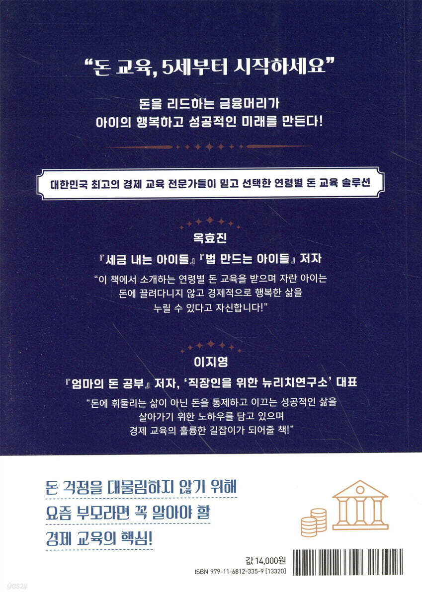 “이 책에서 소개하는 연령별 돈 교육을 받으며 자란 아이는 돈에 끌려다니지 않고 경제적으로 행복한 삶을 누릴 수 있다고 자신합니다!” - 옥효진 (『세금 내는 아이들』 『법 만드는 아이들』 저자)