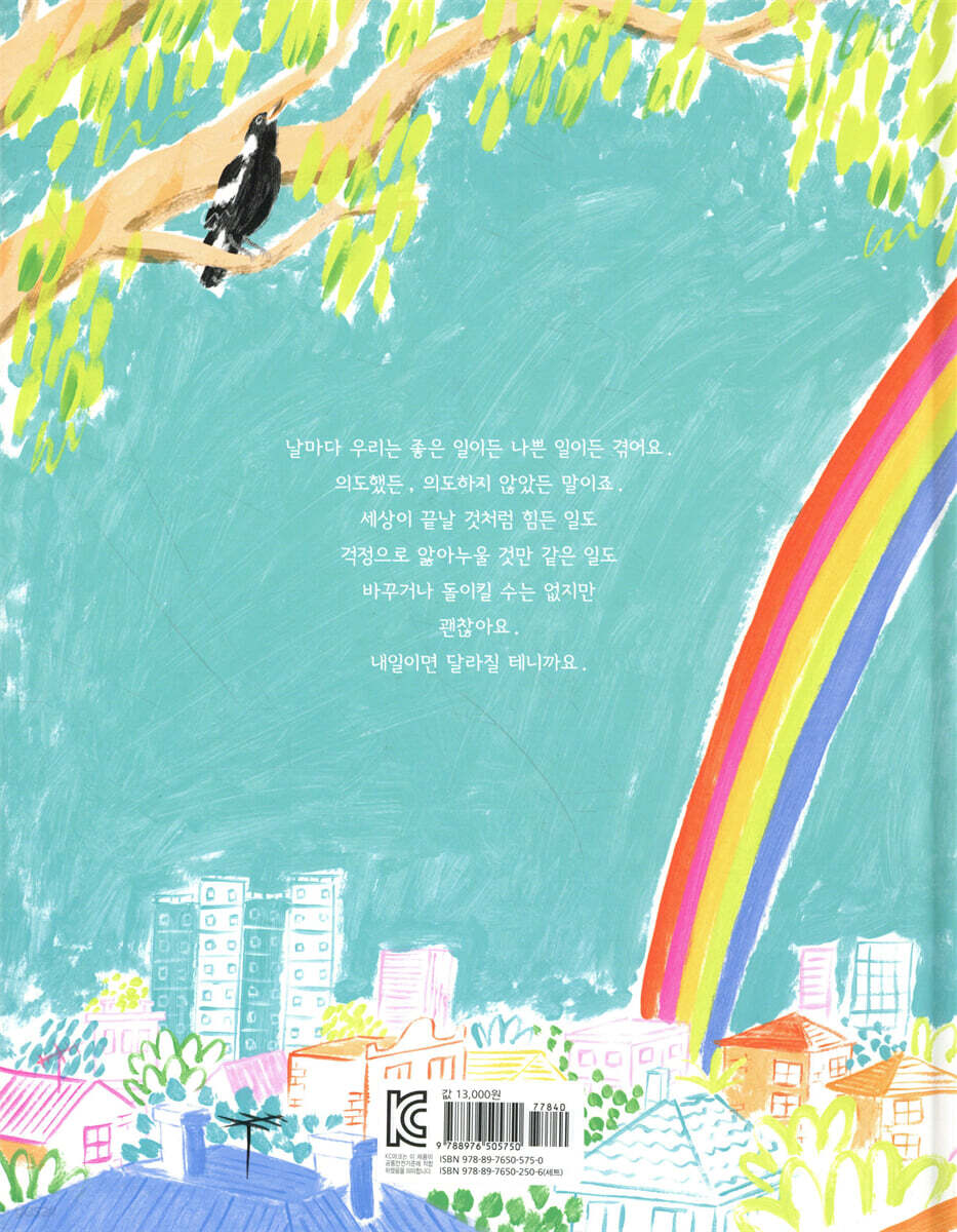 아이들의 상황과 감춰진 속마음을 살피는 그림책 “오늘 하루가 뒤죽박죽이야. 이게 네 탓일까?” 두 아이가 번갈아 보여 주는 하루로 이야기가 이어집니다. 예닐곱 살의 여자아이들이지요. 본문이 시작되는 제목 페이지를 보면, 두 여자아이가 실 전화를 하는 모습을 볼 수 있습니다. 금발의 곱슬머리 여자아이는 3층에 살고 검은색 단발머리 여자아이는 1층에 삽니다. 두 아이의 아침은 엉망진창입니다. 곱슬머리 여자아이는 그저 잠깐 소파 위에 서서 시리얼을 먹으려는 것뿐인데 넘어져 시리얼을 쏟고 맙니다. 검은색 단발머리 아이도 비슷한 실수를 저지른 모양입니다. 한바탕 혼이 났는지, 혼자 방에서 씩씩거리고 있습니다. 아이들은 억울함을 참지 못하고 작은 심통을 부립니다. 곱슬머리 아이는 가족들 머리카락을 싹둑 자르고, 단발머리 아이는 집에 온 손님에게 버릇없이 굽니다. 심술을 부리니 기분은 더욱 나빠집니다. 한바탕 난리를 피우고 학교에 가는 길, 서로 오해가 생깁니다. 툭 쳤다고 생각했는데 친구는 있는 힘껏 밀칩니다. 학교도 그리 편안하지 않습니다. 준비물을 잘 못 챙겨서 답답하고 때로는 수업 내용을 혼자만 모르는 듯하지요. 엉망이 된 하루는 계속 이어집니다. 수업 후, 단발머리 아이는 사고 싶은 사탕을 사지 못합니다. 점점 화가 난 단발머리 아이는 그만 서점에서 곱슬머리 친구가 다른 친구와 다정하게 책 읽는 모습에 심통을 터지고 맙니다. 그 책을 뺏어 북북 찢어 버리고 말지요. 일은 정말 커지고 말았습니다. 아이는 집으로 도망쳐 옵니다. 친구 마음을 아프게 한 일이 너무 후회가 되지요. 영영 잘못을 만회할 수 없을 것만 같고, 그 일로 세상이 끝장날 것 같지요. 아이들의 우당탕한 하루를 고스란히 보여주는 것 같습니다. 그림책 속 두 아이처럼 아이들은 말썽을 부리고 다투고 울고불고하며 어찌할 바를 모를 일을 자주 겪습니다. 어른들은 쉽게 아이를 혼내고 아이들도 자신의 탓이라 여기며 시무룩해집니다. 하지만 잘 들여다보면 상황이 엉망인 것은 아이가 진짜 말썽꾸러기여서가 아니라 서툴기 때문입니다. 아이들의 서투름을 보듬는 따뜻한 목소리 “바꿀 수 없는 건, 그럼에도 여전히…… 우린 널 사랑한다는 거야.” 서로 싸우고 미안한 일이 있어도 세상이 끝나는 건 아니지요. 새로운 날이 시작됩니다. 아이들도 용기를 내서 잘못을 만회하려고 합니다. 제대로 사과를 하고 카드를 쓰고 부모님의 일손을 돕기까지 합니다. 찢어 버린 책은 다시 잘 붙이고 마음을 담아 꽃다발을 만들기도 합니다. 아이들은 쉽게 화해를 하고 더욱더 가까워집니다. 어제의 잘못 때문에 속상해하는 아이가 있다면, 실수투성이인 자기 자신 때문에 어쩔 줄 몰라 하는 아이가 있다면, 감정을 매끄럽게 다루지 못해서 주변 사람들과 자꾸 부딪치는 아이가 있다면, 함께 이 책을 읽어 보면 좋겠습니다. 아이들은 그림책 속 아이들을 보며, 자신들의 마음을 돌아볼 수 있습니다. 그리고 무엇보다도 아이들에게 꼭 필요한 말, 너무나 당연해서 가끔 부모님들이 잊어버리는 말을 이 책이 해 주고 있으니까요. “그럼에도 여전히…… 우리는 널 사랑한다는 거야.” 이 그림책을 읽고 아이들이 힘을 내서 자기 자신을 믿어 보면 좋겠습니다. 몸도 마음도 자라는 시간 동안, 어쩔 수 없이 해야 하는 작은 시행착오들에 너무 속상해하지 말고, 조금 더 여유를 갖도록 말이지요. |