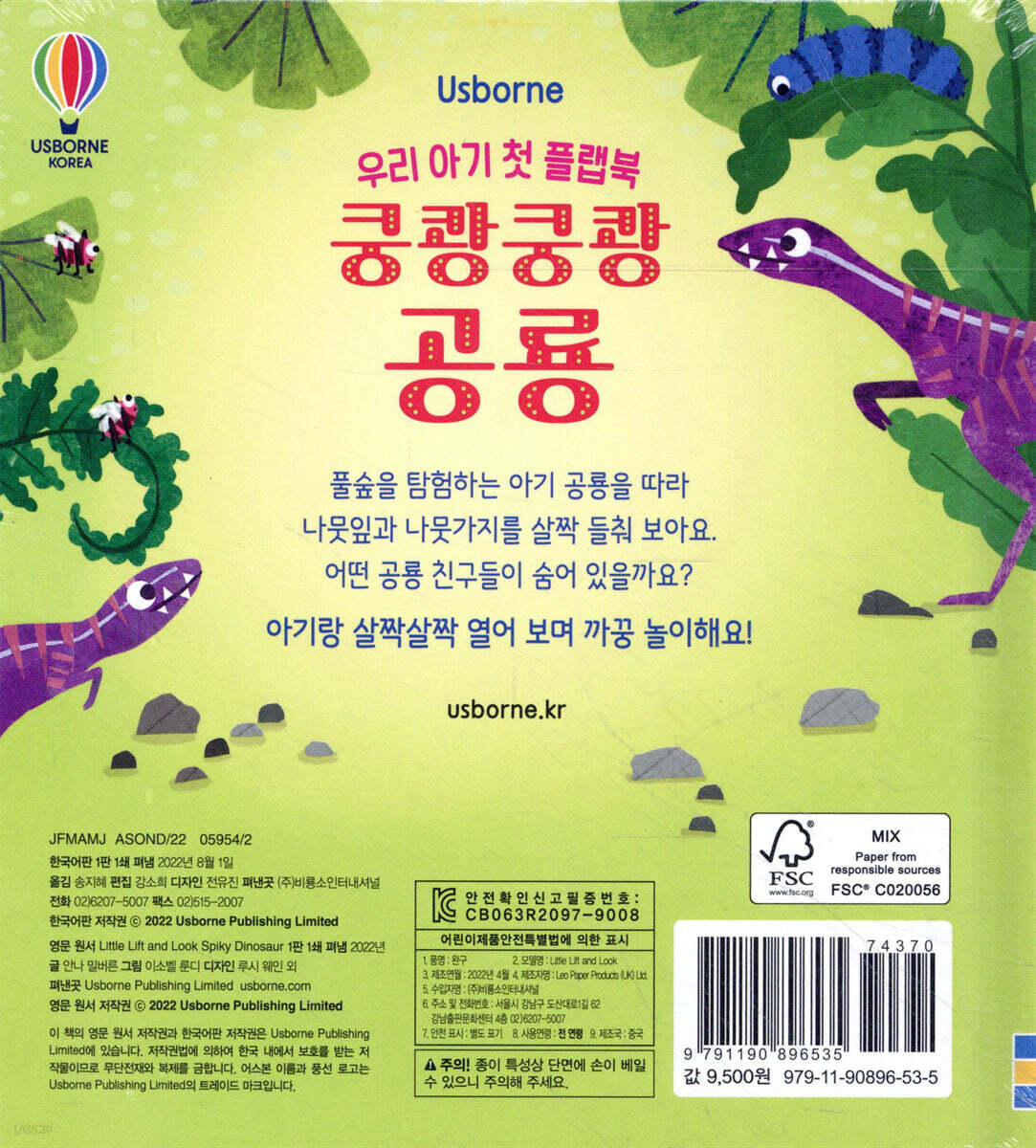 · 커다란 플랩을 열어 까꿍 놀이하듯 나타나는 공룡들을 살펴보며 인지력을 키우고 책 놀이에 흥미를 더해요. · ‘누가 있을까요?’를 아기에게 읽어 주고 살짝 보이는 공룡의 일부를 보고 누가 숨었는지 함께 생각해 보세요. 아기의 인지력이 쑥쑥 자랄 거예요. · 간결한 문장과 의성어, 의태어를 생생하게 읽어 주면 아기의 언어 감각과 어휘력을 키울 수 있어요. · 초원의 공룡들이 알록달록한 그림 속에 잘 표현되었어요. 공룡들이 사는 곳에는 어떤 동물과 식물이 있는지 살펴보고, 어떤 특징을 가졌는지 이야기해 보면 아기의 표현력을 키울 수 있어요. |