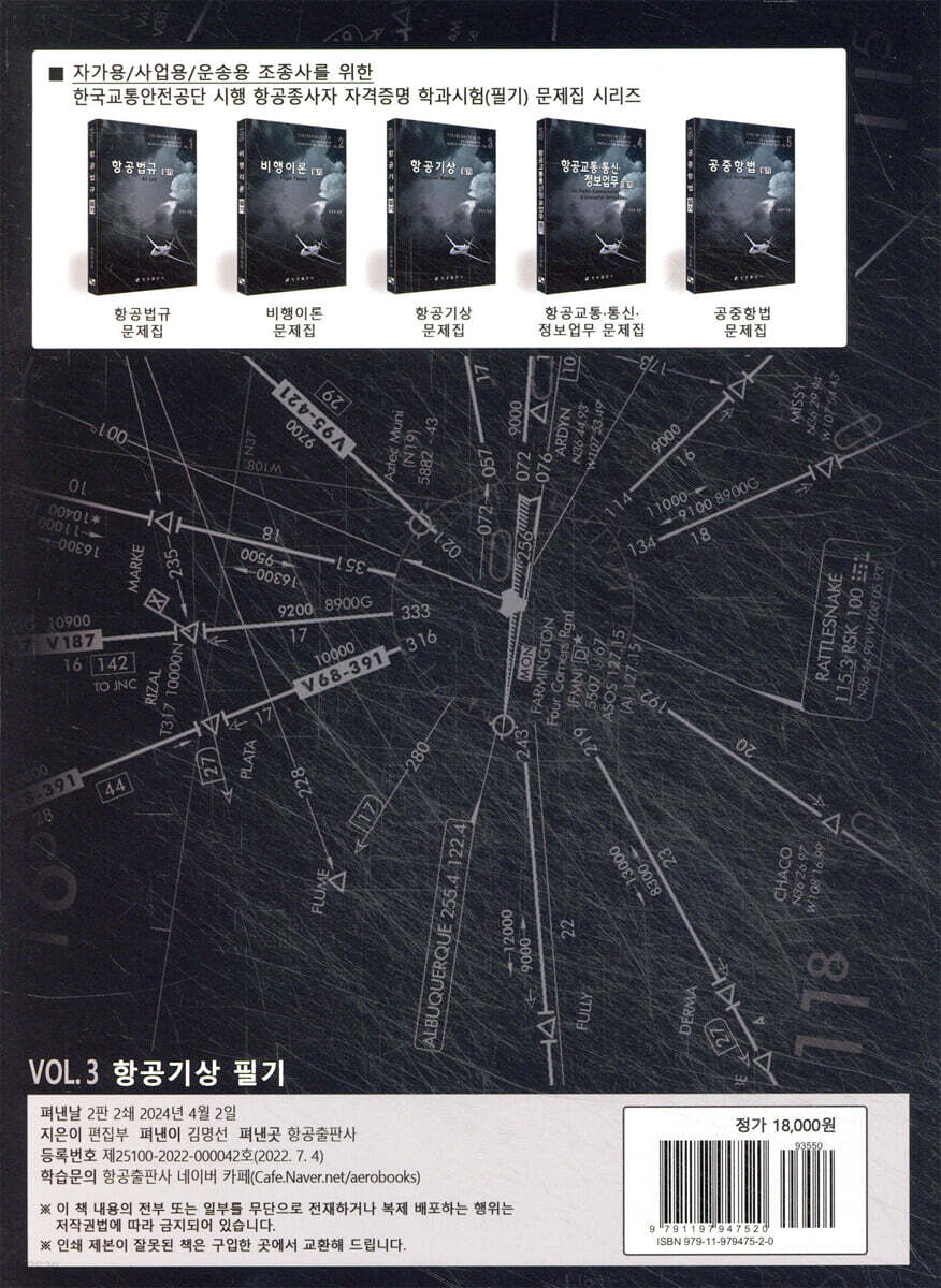 제1장. 항공기상 일반 제1절. 대기 제2절. 기상일반 출제예상문제 제2장. 항공기상 이론 제1절. 바람(Wind) 제2절. 구름과 강수 제3절. 안개(Fog) 제4절. 기단과 전선 출제예상문제 제5절. 뇌우와 번개 제6절. 착빙(Icing) 제7절. 태풍 제8절. 난기류(Turbulence) 출제예상문제 제2편 항공기상 예보 및 관측 제1장. 항공기상 예보 제1절. 일기도(Weather Chart) 제2절. 항공기상 예보 출제예상문제 제2장. 항공기상 관측 및 보고 제1절. 항공기상 관측 제2절. 항공기상 보고 제3절. 항공기상 정보 출제예상문제 제3편 모의고사 |