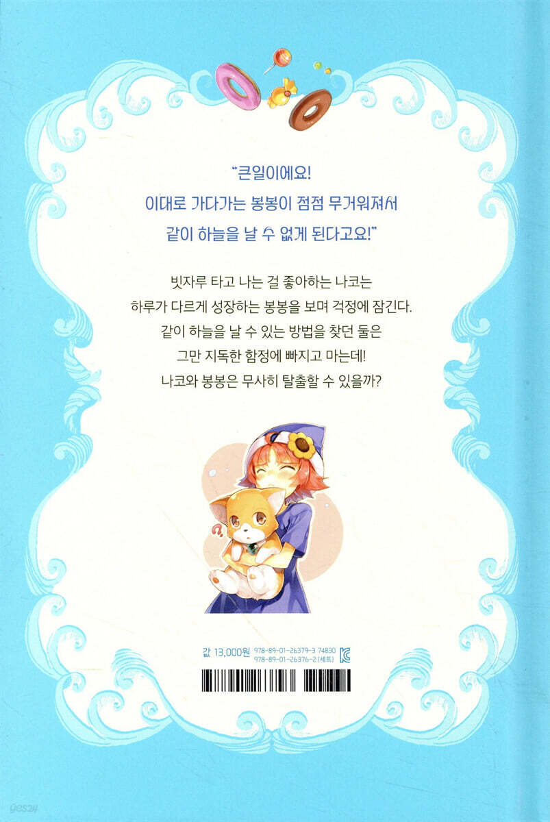 “저에게 봉봉 이야기는 특별해요. 즐겁고 재미있는 모험을 가득 선보일게요!” 『전천당』, 『십 년 가게』 등 기묘하고도 신비로운 판타지 세계를 그려 많은 어린이 독자에게 사랑받는 작가 히로시마 레이코. 이번에는 뒤뚱뒤뚱 위풍당당 매력 만점인 코기 강아지와 함께 찾아왔다! 히로시마 레이코의 신작 『태양의 마녀 나코와 코기 봉봉』은 진정한 마녀를 꿈꾸는 나코와 마녀의 파트너가 된 강아지 봉봉의 모험과 우정 이야기를 담았다. 마녀의 파트너로 신비롭고 예민한 고양이가 아닌, 악당에게도 꼬리를 흔들 것만 같은 귀여운 강아지가 등장하는 깜찍한 반전, 화려한 마법과 신기한 주문, 온갖 역경에 맞서는 나코와 봉봉의 감동적인 모험 이야기가 가득 담긴 『태양의 마녀 나코와 코기 봉봉』 시리즈는 작가의 새로운 작품을 기다렸던 독자들에게 반가운 만남이 될 것이다. 특히 이 작품의 주인공인 봉봉은 작가가 실제로 키웠던 반려견 웰시코기를 모델로 하고 있어 강아지의 귀엽고 엉뚱한 매력이 생생하게 묘사된다. 흥미롭고 화려한 마법 세계관 속에서 펼쳐지는 코기의 용감하고 발랄한 활약상을 만끽해 보자. 마녀에게 빗자루는 생명! 그런데 봉봉과 함께 빗자루를 타고 날 수 없다고? '마녀에게는 고양이'라는 공식을 깨트리고 마침내 서로의 파트너로 인정받게 된 나코와 봉봉! 하지만 고양이가 아닌, 강아지 파트너가 헤쳐 나가야 할 문제들은 생각보다 많았다. 생각지도 못한 난관 중 하나는 바로 봉봉의 몸무게! 모든 마녀들은 파트너인 고양이와 함께 빗자루를 타고 자유롭게 하늘을 난다. 나코 역시 빗자루 타고 나는 걸 누구보다 좋아한다. 그런데 작고 가벼운 고양이와 달리, 봉봉의 몸무게가 점점 늘어나면서 같이 빗자루를 타고 날기 어려워진 것! 나코와 봉봉은 같이 하늘을 날기 위해 마법 풍선, 하늘을 나는 호박 마차 등 다양한 방법을 시도해보지만 모두 좋은 결과를 낼 수 없었다. 방법은 찾던 둘은 별똥별이 놓고 간 별 조각을 모아 소원을 빌기로 결심한다. 그런데 별똥별에게 소원을 빌기도 전에, 지독한 함정에 빠지고 만다! 게다가 라이벌인 달의 마녀 샤나가 무언가 수상한 일을 벌이고 있다는 것도 알게 된다. 과연 나코와 봉봉은 어떻게 이 위기를 극복할 수 있을까? 나코와 봉봉은 위기에 처한 누군가를 모른 척 할 수 없어! 위기 속에서 더욱 빛나는 용기와 선한 마음 『태양의 마녀 나코와 코기 봉봉』 1,2권에서 나코와 봉봉이 편견과 선입견을 넘어 서로의 파트너로 자리매김하고 서로를 믿어 나가는 과정을 그렸다면, 『태양의 마녀 나코와 코기 봉봉 3: 기적의 별똥별을 찾아라!』에서는 나코와 봉봉이 새롭게 닥친 문제를 어떻게 해결해 나가는지, 둘의 마음가짐과 태도를 잘 보여준다. 우선 둘은 닥친 문제를 외면하지 않고, 해결하기 위해 적극적으로 나선다. 봉봉과 함께 하늘을 날 수 없다는 걸 알게 되자, 나코는 포기하거나 다른 파트너를 찾기 보다 어떻게든 봉봉과 함께 하기 위해 수많은 노력을 기울인다. 온갖 종류의 책을 찾아보는 것은 기본이고, 안 되는 바느질, 어설픈 마법 능력으로나마 새로운 방법을 시도하며 방법을 모색한다. 하늘을 나는 방법을 찾는 과정에서 그만 함정에 빠져 괴상한 악당 클레 남작의 연구실에 갇혔을 때도, 둘은 서로를 믿으며 함께 탈출하는 방법을 찾는다. 게다가 악당에게 붙잡힐 절체절명의 순간에도, 자신들만 탈출하지 않고, 위험에 빠진 별똥별들을 도우며 어떻게든 이들을 살리고자 애쓴다. 사실 마법 세계 역시 우리 현실과 마찬가지로, 자기 자신만을 생각하며 타인을 짓밟고 실력을 쌓는 마녀들이 있다. 나코의 라이벌인 달의 마녀 샤나처럼 말이다. 하지만 나코와 봉봉은 다르다. 둘은 자신들의 방식대로, 시간이 좀 더 걸리고 위험에 처할지라도 곤란한 타인을 못 본 채 하지 않는다. 그리고 그렇게 다른 누군가를 도우며 결국엔 방법을 찾고 앞으로 앞으로 나아가고 성장한다. 좀 더 빠르게 목적지에 도달하고자 다른 사람을 외면하는 것이 흔해진 시대에 나코와 봉봉의 선함이 더욱 빛이 나는 이유다. '문제가 생긴다면 서로를 믿고 용감하게 맞서라! 다른 사람의 어려움을 외면하지 말고 도우며 함께 나아가자!' 사랑스러운 콤비, 나코와 봉봉은 우리에게 이렇게 이야기한다. 그런데 과연 나코와 봉봉은 대체 어떻게 되는 걸까? 무사히 탈출할 수 있었을까? 하늘을 나는 방법을 찾았을까? 감동과 반전이 가득한 흥미진진한 마법 이야기, 책 속에서 만나 보자! |