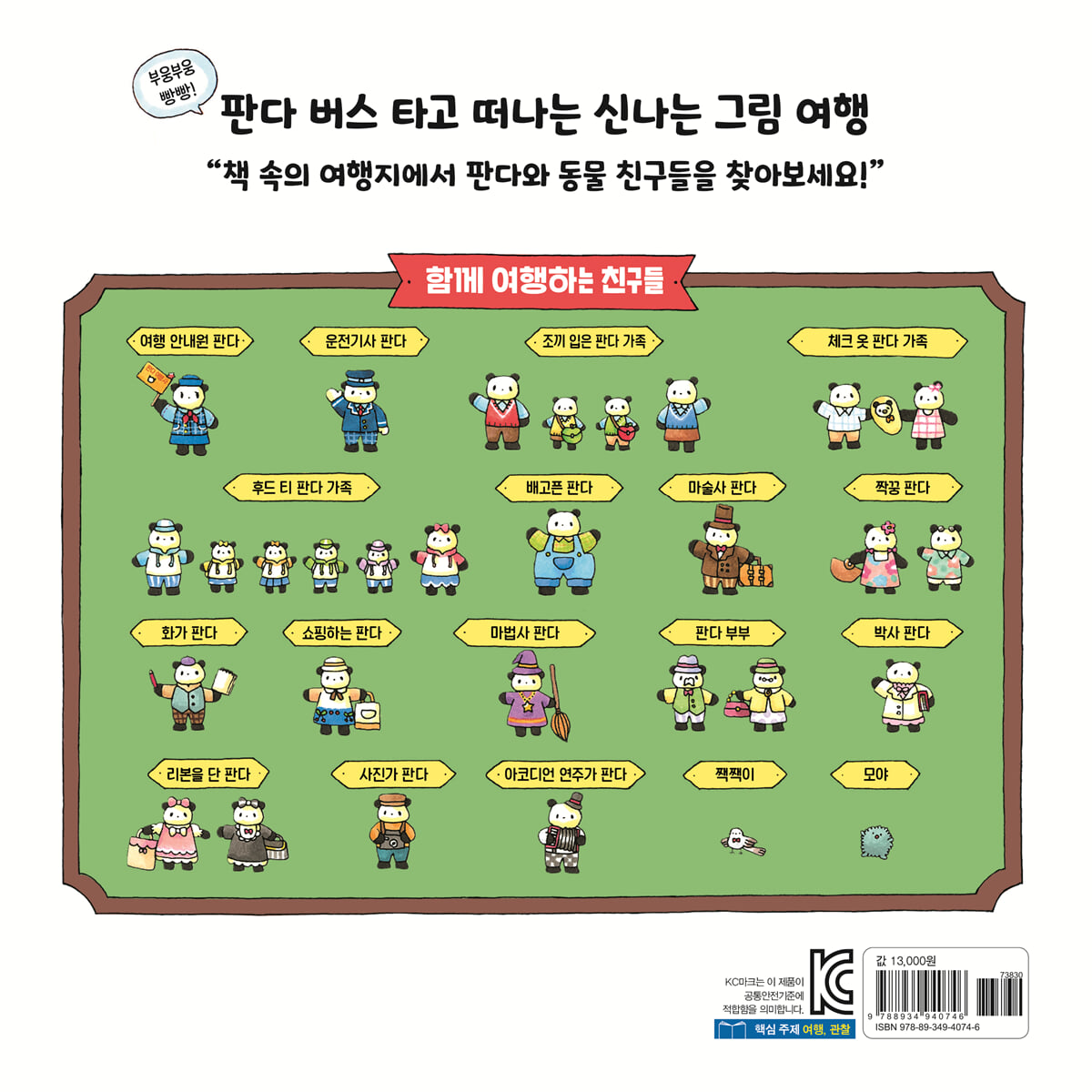 쉿, 여행지는 도착할 때까지 비밀이에요. 판다 여행사만의 특별한 여행법이지요. --- p.6~7 부웅부웅 빵빵~ 신나는 판다! 첫 번째 여행지는 시원하고 조용한 바닷속 터널이에요. --- p.8 부웅부웅 빵빵~ 신나는 판다! 이번에 들를 곳은 놀랍게도 하늘 위! 신비로운 성이 둥둥 떠 있으니 발밑을 조심하세요. --- p.14~15 |