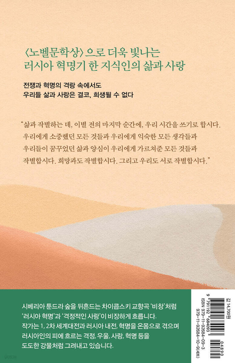 러시아 혁명기 한 지식인의 삶과 사랑 “전쟁과 혁명의 격랑 속에서도 우리들 삶과 사랑은 결코, 희생될 수 없다.” 시베리아 툰드라 숲을 뒤흔드는 차이콥스키 교향곡 ‘비창’처럼 『닥터 지바고 』에는 ‘러시아 혁명’과 ‘격정적인 사랑’이 비장하게 흐른다. 작가는 1,2차 세계대전과 러시아 내전, 혁명을 온몸으로 겪으며, 러시안인의 피에 흐르는 격정, 우울, 사랑, 혁명 등을 도도한 강물처럼 그려내고 있다. 우리는 세계적으로 널리 알려진 『닥터 지바고』로 인해 지은이를 소설가로 알고 있지만, 그는 러시아 서정시인이다. 『닥터 지바고』는 그의 유일한 장편소설로, 1958년에 노벨문학상 수상작으로 선정되며 “동시대 서정시와 러시아 서사문학의 위대한 전통 계승에 기여”했다는 평가를 받았다. 이 작품이 처음 출간된 곳은 이탈리아이다. 소비에트 출판계가 출판을 거부했기 때문이다. 이탈리아에서 처음 책이 출간되고, 그 이듬해(1958년)에 이 책은 노벨문학상 수상작으로 결정되었다. 그러나 소련 정부와 작가동맹은 작가에게 극심한 비난과 비평을 쏟아붓고, 결국 작가는 정치적인 이유로 수상을 포기한다. 작가동맹은 그를 제명하고 정부는 그의 시민권을 박탈한다. 그 뒤에 작가는 번역으로 생계를 이으며 병마와 싸우다가 2년 뒤에 세상을 뜬다. 『닥터 지바고』는 보통 소설로 이해되지만, 작품이 갖고 있는 다양한 문학적 특성과 형식은 이 작품을 특정 장르로 분류하기 어렵게 만든다. 시적 어조가 자주 등장하는 부분은 소설이 아닌 ‘서사시’처럼 보이기도 하고, 때론 심오한 철학 비평서처럼 인간 존재와 삶, 예술에 대한 깊은 성찰을 보여준다. 참혹한 러시아 혁명기의 중요 사건들, 혁명에 유폐된 비극적 지식인의 무력한 모습들, 걷잡을 수 없는 사랑 등, 그야말로 시대를 아우르는 세기의 총서라고 볼 수 있다. 예술 활동이 제약받고 자유로운 창작이 불가능했던 당시의 정치적 상황에서, 파스테르나크가 선택할 수 있는 유일한 길이었을 것이다. 그럼에도 이 소설을 관통하는 맥은 하나다. 이념이 아닌 인간 존재 자체의 가치를 되찾고, 주장과 구호 대신 소박한 일상을 누리며, 자연과 함께 호흡하고 진정한 사랑을 이루는 것, 이것이 지바고가, 파스테르나크가 추구하는 진실이다. 혁명 속이라도 일상의 삶과 사랑은 어떤 이유로도 유예되어서는 안 된다. 이 책을 라라와 유리의 거침없는 사랑으로 읽든, 혁명기의 러시아 역사로 읽든, 철학서로, 서사시로 읽든 그것은 독자의 선택이고, 어느 선택도 맞다. 편집자의 말 “‘라라’를 미워했던 기억.” 십대에 오독한 책들이 있습니다. 『폭풍의 언덕』의 히드클리프, 『바람과 함께 사라지다』의 레트 버틀러 등, 주인공들이 너무 집요하거나 광기어리거나 능글맞으면 딱, 눈밖에 났습니다. 그래서 책을 읽는 내내 주인공에게 공감하기보다는 거리를 두며, 버텨 읽었지요. ‘라라’도 그랬습니다. 미웠습니다. 한 가정을 파탄내고 끝까지 지바고 곁을 맴도는 게 정말이지 싫었지요. 유리(지바고)의 아내(토냐)를 응원하며 책장을 넘겼습니다. 사실은 유리(지바고)에게 문제가 더 많았는데요. 지금은… 이해합니다. 공감합니다. 그녀의 야성적인 본능과 매혹, 양심 사이의 갈등, 누가 그녀를 미워할 수 있을까요. 유리 또한 마찬가지입니다. 시인의 심장을 가진 이가 라라에게 닿는 거센 물줄기를 어떻게 막아낼 수 있겠습니까. 러시아의 내전과 혁명, 명멸하는 혁명가들, 방황하는 지식인들 또한 새롭게 눈에 들어왔습니다. 그렇지만, 지금도 저는 이 소설을 ‘라라와 유리’의 사랑으로 읽습니다. 차이콥스키의 ‘비창’처럼. |