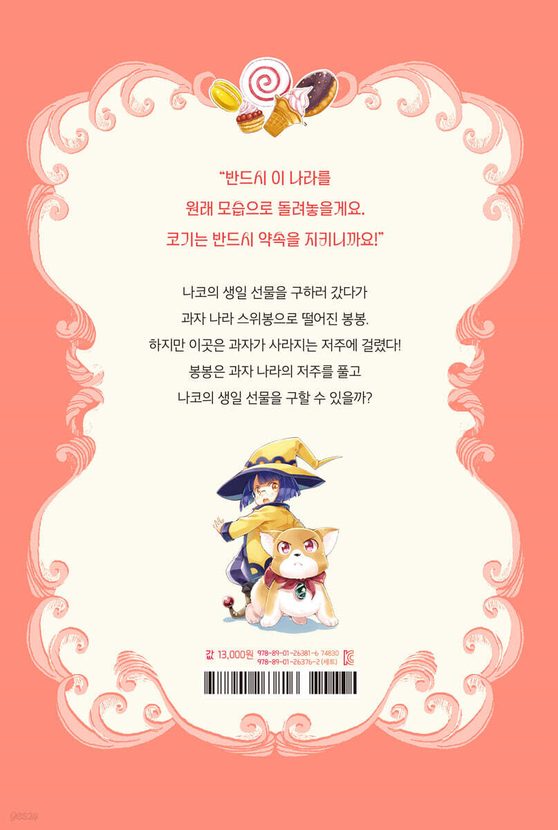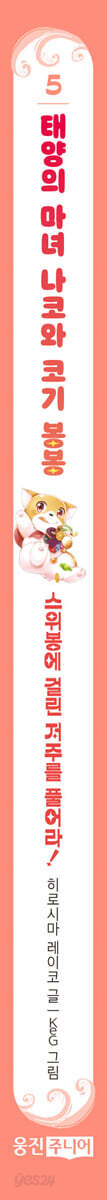 “여러분이 보내 준 응원과 사랑 덕분에 나코와 봉봉의 모험은 계속 될 거예요!” 『전천당』, 『십 년 가게』 등 기묘하고 신비로운 판타지 세계를 그려 많은 어린이 독자에게 사랑 받는 히로시마 레이코. 이번에는 뒤뚱뒤뚱 위풍당당 매력 만점인 코기 강아지와 함께 찾아왔다! 히로시마 레이코의 신작 『태양의 마녀 나코와 코기 봉봉』은 진정한 마녀를 꿈꾸는 나코와 마녀의 파트너가 된 강아지 봉봉의 모험, 우정 이야기를 담고 있다. 악당에게도 꼬리를 흔들 것만 같은 귀여운 강아지가 마녀의 파트너로 등장하는 깜찍한 반전, 화려한 마법과 신기한 주문, 온갖 역경에 맞서는 나코와 봉봉의 감동적인 모험 이야기가 가득 담긴 『태양의 마녀 나코와 코기 봉봉』 시리즈는 작가의 새로운 작품을 기다렸던 독자들에게 반가운 만남이 될 것이다. 나코와 봉봉의 이야기는 원래 4권에서 마무리될 예정이었지만, 독자들의 응원과 사랑에 힘 입어 새로운 이야기로 계속될 수 있었다. 5권에서는 봉봉이 항상 함께였던 나코와 떨어져 홀로 저주를 풀어 나가고, 새로운 인물인 마법사가 등장해 봉봉과 힘을 합쳐 층마다 다른 저주에 걸린 탑을 탈출해 나가는 등 전작보다 더욱 흥미진진한 사건이 펼쳐진다. 화려한 세계관 속에서 계속되는 봉봉의 모험을 만끽해 보자. 저주에 걸려 모든 과자가 사라진 과자 나라 스위봉! 홀로 스위봉에 소환된 봉봉은 나코 없이 이 저주를 풀 수 있을까? 나코의 12살 생일 파티를 위해 홀로 선물을 찾아 나선 봉봉. 하지만 우연한 사고로 저주에 걸려 과자가 모두 사라진 과자 나라 스위봉에 떨어지게 된다. 그곳에서 어린 마법사 타무톨을 만나고, 함께 스위봉에 걸린 저주를 풀기 위해 고군분투한다. 그런데 스위봉에 저주를 건 마법사는 저주를 푸는 것을 도와주겠다며 봉봉과 타무톨을 하얀 탑으로 이끌었고, 우뚝 솟은 하얀 탑 안에는 생각하지 못한 위험이 곳곳에 도사리고 있었다. 층마다 다른 종류의 저주를 풀기 위해 탈출 열쇠를 얻어야 하는 봉봉과 타무톨은 목숨을 건 모험을 시작하게 되는데…… 과연 마법사는 무슨 음모를 꾸미고 있을까? 또 무언가 비밀을 숨기고 있는 것 같은 겁쟁이 마법사 타무톨의 정체는 무엇일까? 무엇보다, 나코 없이 봉봉은 혼자 스위봉의 저주를 풀고 다시 돌아가 무사히 생일 파티를 할 수 있을까? 한층 더 성숙해진 봉봉의 홀로서기가 시작된다. “봉봉 덕분에 아주 큰 용기를 얻었어요. 나 혼자였다면 스위봉을 구하지 못했을 거예요.” 봉봉이 알려 주는 어려움 속에서도 포기하지 않는 용기와 도전 정신! 『태양의 마녀 나코와 코기 봉봉』 1, 2권에서 나코와 봉봉이 편견과 선입견에 맞서 서로의 존재를 긍정하게 되는 과정을 그렸고, 3, 4권에서 새로운 문제를 해결하기 위한 마음가짐과 태도를 그렸다면, 『태양의 마녀 나코와 코기 봉봉』 5권에서는 친구와의 우정과 믿음의 중요성, 그리고 끝까지 포기하지 않고 도전하는 용기를 보여 준다. 봉봉은 자신을 강제로 과자 나라에 소환한 타무톨을 원망하지 않고, 스위봉의 저주를 풀기 위해 고군분투한다. 저주를 푸는 열쇠의 힌트를 얻기 위해 끊임 없이 고민하며, 과감하게 문제를 해결해 나간다. 그 과정에서 자신의 잘못을 스스로 인정하고 반성하는 모습을 보여 주고, 타무톨의 실수에도 포기하지 않고 끝까지 그를 믿어 준다. 이런 봉봉의 모습은 겁쟁이였던 타무톨에게 용기를 줘 훌륭한 마법사가 될 수 있게 도와주고, 타무톨과 봉봉 모두 한층 더 성장할 수 있는 계기가 된다. ‘봉봉은 행운의 강아지니까 절대 실패 따위 하지 않아!’라며 언제나 기죽지 않는 봉봉의 사랑스러운 모습을 통해 용감하게 도전하고 포기하지 않는 태도, 친구를 향한 신의, 긍정 마인드 등에 대해 다시 한번 생각해 보게 된다. |