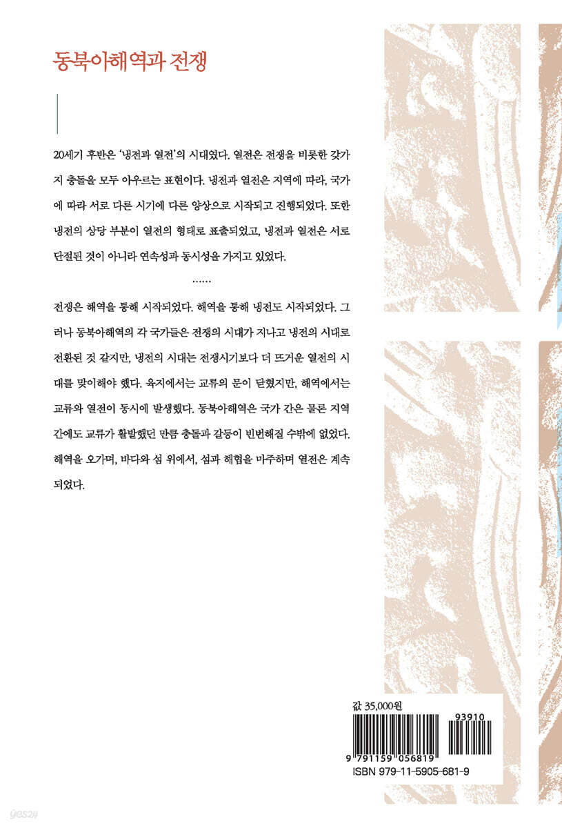 책머리에 6 제1부 근대 동아시아의 전쟁 서광덕 해외 여행기에 나타난 해양 문명『해국도지海國圖志』의 서술 시각을 중심으로 17 1. 들어가며 17 2. 근대 동아시아의 전쟁과 바다 20 3. 『해국도지』의 구성과 의미 27 4. 나가며 46 오타 이즈루 근현대 중국과 머핸의 ‘해권海權’론 49 1. 시작하며-문제의 소재 49 2. ‘해권’에 눈뜸-량치차오梁啓超와 머핸의 『해상권력사海上權力史』 58 3. 청말의 ‘해권’론과 ‘영해領海’ 71 4. 중화민국 시기에 있어서 머핸 ‘해권’론의 침투 83 5. 마치면서-중국 공산당과 머핸의 ‘해권’론 93 허원영 중일 해양 분쟁의 냉전적 변용, 1952~1972‘열전’ 이후의 바다에서 ‘냉전’의 섬으로 100 1. 동중국해 해양 분쟁의 역사성 100 2. 냉전 초기 동중국해의 해양 분쟁 양상 103 3. 열전과 냉전 사이의 동중국해 117 4. ‘영유권’을 넘어서 ‘해역’의 질서로 130 김윤미 한국전쟁기 유엔군의 원산 상륙작전과 철수작전을 통해 본 해상수송 135 1. 유엔군의 해상작전과 해군조직 138 2. 원산의 지정학적 의미와 상륙작전 144 3. 철수작전과 해상봉쇄작전 154 4. 한국전쟁에서 해상수송의 역할 160 제2부 전쟁 속의 동북아해역 다케모토 니이나 시베리아 지역 ‘가라유키상からゆきさん’과 현지의 인적 연계니항사건 ‘순난자’ 재고 167 1. 들어가며 167 2. 시베리아 지역과 일본인, 그리고 ‘가라유키상’ 170 3. 현지 ‘가라유키상’의 인간 관계 174 4. 니항사건과 순난비 176 5. 나가며 182 양민호 오키나와 전투와 방언 논쟁에 관하여차별과 갈등의 관점에서 186 1. 들어가며 186 2. 오키나와 방언 논쟁의 시작 188 3. 방언 표찰의 유래 190 4. 오키나와 전투의 발발 196 5. 오키나와 전투 속 방언에 대한 차별의식 199 6. 나오며 201 박사라 일본 출입국 관리체제의 성립과정역사적ㆍ국제적 비교를 통해 204 1. 문제의식과 제기 204 2. ‘입국체제’에 대한 비판-1960년대 말에서 1980년대 207 3. 일본 연구ㆍ출입국관리사 연구-2000년대 214 4. 나가며 220 김경아 한국전쟁 후 영도대교의 장소성과 점바치골목 형성의 사회적 의미1950~60년대 대중가요를 중심으로 225 1. 영도대교의 건설 225 2. 피난민의 남하와 영도대교의 장소성 228 3. 점바치골목의 형성과 그 사회적 의미 239 4. 철거된 점바치골목과 향후 과제 249 우쥔팡 분열과 심리전전쟁 중 양안兩岸 어민의 군사화 254 1. 양안전쟁과 분단 254 2. 냉전시기 진먼섬과 마쭈섬 어민들의 생활변화 259 3. 냉전시기 진먼 전선의 심리전 작업 266 4. 나오며 273 제3부 동북아해역과 냉전 최민경 냉전의 바다를 건넌다는 것한인 ‘밀항자’ 석방 탄원서에 주목하여 279 1. 들어가며 279 2. 냉전과 교차하는 밀항의 이해 281 3. ‘밀항’의 실태와 ‘불법’의 단속 285 4. 탄원서에 나타난 ‘밀항’의 정치사회적 맥락 291 5. 나가며 300 이가영 대만해협과 심리전냉전시기 중국과 대만의 삐라 304 1. 대만해협에서의 심리전과 삐라 306 2. 중국에서 대만으로 보낸 삐라 315 3. 대만에서 중국으로 보낸 삐라 325 4. 중국과 대만의 삐라, 그리고 심리전 341 류샤오천 사회주의 항구의 쇼윈도냉전시대 상하이국제선원클럽(1950~1986) 345 1. 상하이 선원클럽의 설립 및 설립 목적 348 2. 상하이국제선원클럽의 성격과 특징 355 3. 모순과 충돌-상하이국제선원클럽 운영 중 나타난 문제점 359 4. 선원클럽 성격전환의 어려움 367 5. 나오며 370 초출일람 375 필자 소개 377 |