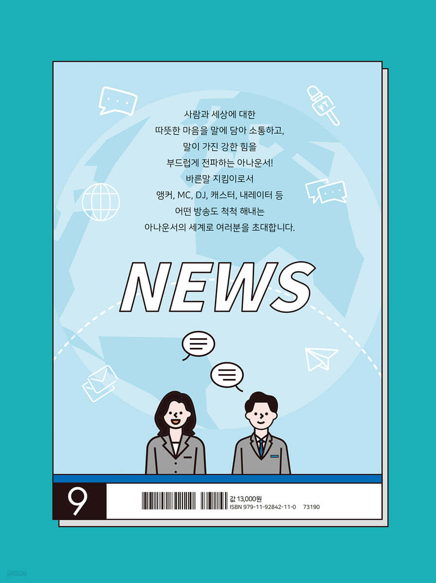 2. 아나운서는 누구인가요? -아나운서란? -아나운서의 탄생 -우리나라 아나운서의 역사는? -구체적으로 하는 일은 뭔가요? -표준어 사용의 기준, 아나운서! 3. 아나운서가 되려면 -독서를 통해 사람과 세상에 관심을 -따뜻한 마음으로 경청하는 태도도 -글쓰기 연습은 필수! -전공은 상관없어요 -공채시험으로 아나운서에 도전! 4. 아나운서가 되면 -교육연수를 통해 진짜 아나운서로 -강도 높은 낭독 훈련도 -콘텐츠 전달자의 역할이 먼저 -아나운서도 개성의 시대 -맡은 프로그램은 전문가처럼 -작지만 큰 조직 아나운서 부서 5. 아나운서의 매력 -다양한 사람을 만나는 기회 -삶의 소중함을 깨닫는 기쁨 -출연자가 믿어주었을 때의 뿌듯함 -수많은 분야를 공부하는 매력도 6. 아나운서의 마음가짐 -아나운서의 ‘진행병’이 오해를 부르지만 -직업병이 있어도 -멍 때리기로 여유를 찾아요 -건강한 목소리는 건강한 몸에서 7. 아나운서 업무 엿보기 -아나운서의 하루 -방송 준비는 철저하게 -출연자와 사랑에 빠져요 -새로운 질문으로 출연자의 마음을 열어요 -아나운서는 바른말 지킴이 -경쟁은 피할 수 없어요 8. 아나운서의 미래 -자신만의 전문 분야가 경쟁력 -한국어 전문가로 해외 진출을 -다른 분야로 진출도 가능해요 9. 아나운서 윤지영을 소개합니다 -화목한 부모님과 행복했던 어린 시절 -의사도 되고 싶고, 뮤지컬 배우도 되고 싶었어요 -우연한 기회를 통해 아나운서가 되다 -신입 때 방송사고를 낸 적도 있어요 -주위의 배려를 받으며 프로그램을 진행하기도 -좋은 세상을 만드는 데 도움이 되는 직업, 아나운서 -인간과 세상에 대한 사랑을 실천하며 살고 싶어요 10. 10문10답 -말을 잘하는 훈련이 따로 있나요? -아나운서 직업을 다룬 드라마가 있다면? -방송 실수를 했던 적은? -사람들이 잘못 사용하는 단어가 있다면? -아나운서의 직급과 연봉은 어떻게 되나요? -프리랜서 아나운서는 누구인가요? -내 마음을 잘 표현하는 방법은 뭘까요? -‘아나테이너’는 누구인가요? -스포츠 캐스터는 어떤 자질이 필요한가요? -출연자와 대화할 때 주의할 것이 있다면? 11. 나도 아나운서 |