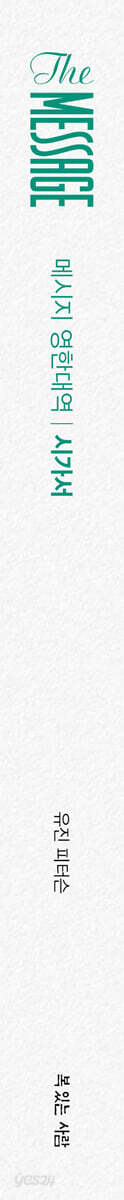 개역성경, 솔직히 좀 어려운 게 사실이지만 다들 쓰니까 어쩔 수 없이 들고 다녀야 했다. 다른 현대어 성경, 좀 밋밋하고 아쉬운 구석이 많아 영어 성경 보듯 가끔 참고만 했다. 유진 피터슨의 『메시지』 성경, 오랜만에 앉은자리에서 책 읽듯이 쭉 읽고 묵상하고 싶게 만드는 성경이다. 못 믿겠으면 지금 당장 로마서 12장 1-2절을 찾아 읽어 보라! - 서재석 (Young2080 대표)