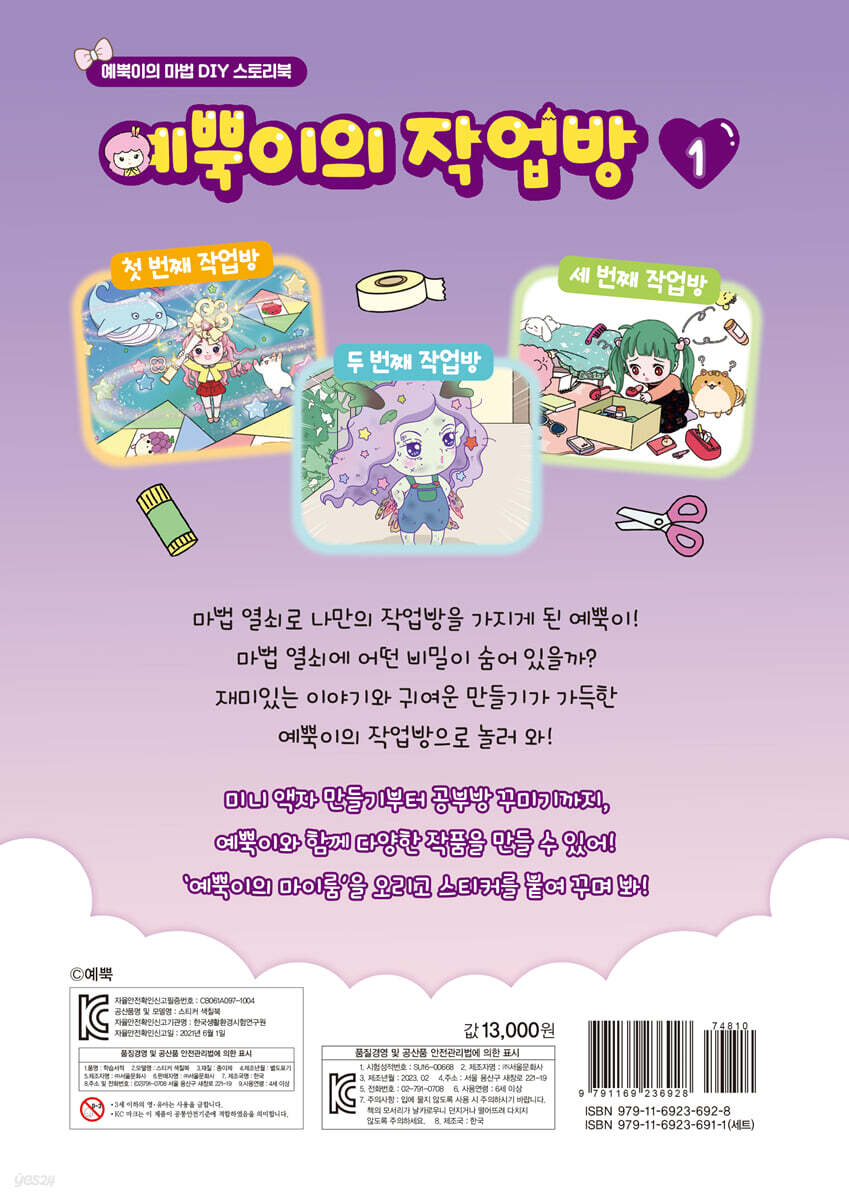 첫 번째 작업방: 별이가 별이다옹? -미니 액자 만들기 -야광 별 스티커 만들기 두 번째 작업방: 요정의 날개 -요정의 날개 만들기 세 번째 작업방: 초은이의 공부방 -공부방 꾸미기 에필로그: 핌핌의 편지 *특별 부록 예뿍이의 마이룸 만들기 -예뿍이의 마이룸 도안 A -예뿍이의 마이룸 도안 B -예뿍이의 마이룸 도안 C |