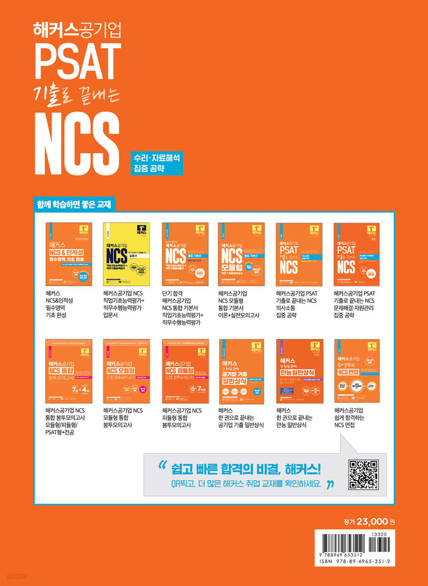 NCS 수리능력 핵심 이론부터 실전까지 한 권으로 끝! PSAT 기출문제로 공기업 NCS 및 대기업 인적성 완벽 대비 [이런 분들에게 추천합니다] 1. 공기업 및 대기업에 취업하고 싶은 분들 2. PSAT형 수리/자료해석 문제를 어떻게 준비해야 할지 모르는 분들 3. NCS 수리능력 점수가 잘 안 나오는 분들 4. 수리/자료해석 문제풀이 시간을 단축시키고 고득점하고 싶은 분들 [해커스 교재만의 특장점] 1. NCS 수리능력 완벽 대비! 최신 출제경향을 철저히 분석한 기출유형공략과 상세한 이론 및 문제를 수록하였습니다. 1) 최신 출제경향 분석과 상세한 이론을 수록하여 수리능력을 철저하게 대비할 수 있습니다. 2) ‘기출유형분석 → 문제풀이에 필요한 이론 학습 → 집중공략문제 → 실전모의고사’순의 체계적인 학습으로 어려운 수리능력을 확실하게 대비할 수 있습니다. 2. [역량 진단 TEST]와 [맞춤 학습 플랜]으로 전략적인 학습이 가능합니다. ‘역량 진단 TEST’와 학습 가이드를 통해 학습 전 자신의 실력을 점검하고, ‘맞춤 학습 플랜’으로 자신의 실력 및 학습 성향에 따라 학습 플랜을 선택하여 전략적으로 학습할 수 있습니다. 3. PSAT형 자료해석부터 응용 계산 및 기초 연산까지! 다양한 유형의 문제로 문제풀이 능력을 향상시킬 수 있습니다. 1) NCS 수리능력에 출제되는 모든 유형의 문제를 수록하였습니다. ① 자료 분석 집중공략문제: 핵심 포인트 선별 연습을 통해 자료를 전략적으로 분석하는 능력을 향상시킬 수 있습니다. ② 응용 계산 집중공략문제: 다양한 응용 계산 문제를 통해 정형화된 공식을 빠르게 적용하는 훈련이 가능합니다. ③ 시간 단축 집중공략문제: 문제 중간마다 적정 풀이 시간이 기재되어 있어 문제를 제한시간 내에 푸는 연습이 가능합니다. ④ 고득점 집중공략문제: 한층 어려운 문제를 시간 제한 없이 꼼꼼히 풀어보며 고난도 문제까지 철저하게 대비할 수 있습니다. 2) 민간경력자/5급 공채 PSAT 뿐만 아니라, 입법고시/PSAT 기출문제도 선별 수록하여 고득점 대비까지 가능합니다. 4. 최신 출제경향을 반영한 [PSAT형 실전모의고사 3회분]을 풀어보며 실전 감각을 극대화시킬 수 있습니다. 5. [바로 채점 및 성적 분석 서비스]를 통해 본인의 성적 위치를 파악하고 취약점을 극복할 수 있습니다. 실전모의고사 및 해설집에 수록된 ‘바로 채점 및 성적 분석 서비스’ QR코드를 통해 간편하게 채점하고, 응시 인원 대비 자신의 성적 위치와 학습 방향을 확인할 수 있습니다. 6. [빠른 문제풀이 Tip]이 수록된 [약점 보완 해설집]을 통해 전략적인 학습을 할 수 있습니다. 1) 시간을 단축하기 위한 ‘빠른 문제 풀이 Tip’을 제시하여 짧은 시간 안에 많은 문제를 정확하게 해결하는 방법을 학습할 수 있습니다. 2) 정답뿐만 아니라 오답의 이유까지 꼼꼼하게 분석하여 정확한 문제풀이를 할 수 있습니다. [NCS 고득점을 위한 해커스만의 추가 학습 콘텐츠 - 해커스공기업(public.Hackers.com)] 1. 본 교재 인강(교재 내 할인쿠폰 수록) 2. 인적성 & NCS 입문편(수리능력) 강의(교재 내 할인쿠폰 수록) 3. 김소원 선생님의 NCS 수리능력 3초 풀이법 강의(교재 내 수강권 수록) 4. 문제풀이가 빨라지는 Speed up 연산문제(PDF) 5. NCS PSAT형 온라인 모의고사(교재 내 응시권 수록) 6. 무료 바로 채점 및 성정 분석 서비스 |