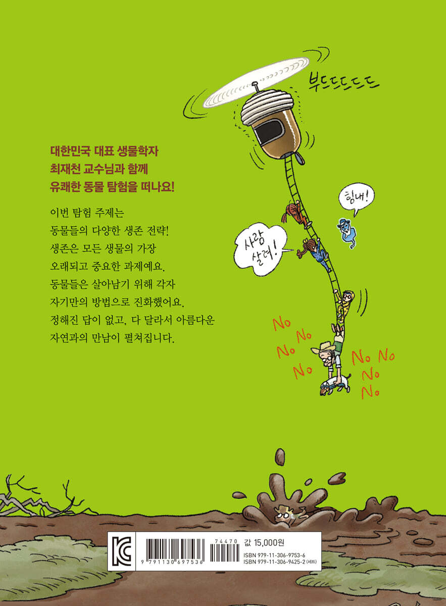 ★ 지구를 사랑하는 어린이를 위한 생물학 동화 팬데믹과 기후 위기로 지구가 몸살을 앓고 있다. 자연과 함께 살아가는 방법을 강구해야만 하는 때다. 자연과의 공생은 다음 세대를 살아갈 우리의 아이들에게는 더 긴급하고 간절한 일이다. 그러나 우리 아이들은 자연과 너무 멀리 떨어져 있다. 자연과 관계 맺지 않고 살아온 아이들이 지구와 자연을 사랑하고 보호할 수 있을까. 『최재천의 동물대탐험』 시리즈의 고민은 그곳에서 시작되었다. 자연은 정복하고 학습하는 대상이 아니라 경험하고 알아가고 느끼고 사랑할 대상이다. 『최재천의 동물대탐험』은 그 길을 닦아서 자연과 아이들의 연결을 돕는 책이다. 조각조각 파편화된 생물학 지식이 아니라, 자연을 직접 경험하고 사랑하는 생물학의 세계로 이끌어 주는 책이 바로 『최재천의 동물대탐험』 시리즈다. ★ 타잔이 되고 싶었던 소년 최재천의 꿈이 담긴 동화 『최재천의 동물대탐험』은 대한민국 대표 생물학자이자, 인기 유튜버인 최재천 교수가 다음 세대를 위한 생물학 동화 시리즈로 기획하고 감수한 책이다. 최재천 교수는 권별 주제 선정, 캐릭터 설정, 글과 삽화 감수, 해설 정보 감수 등을 담당했다. 거기다 동화의 주인공 중 한 명인 ‘개미박사’로 출연하여 동화의 재미를 더하고 있다. 최재천 교수는 타잔이 되고 싶었고, 톰 소여처럼 살고 싶었고, 트리 하우스가 갖고 싶었던 소년이었다. 그는 산으로 바다로 쏘다니며 놀고, 거미줄을 모아 잠자리를 잡고, 샛강에 굴을 파서 아지트를 만들던 어린 시절이 지금의 자신을 있게 한 힘이라고 자부한다. 책에는 최재천 교수의 이런 경험과 생각들이 이야기로 담긴다. 『최재천의 동물대탐험 2』에는 최재천 교수의 정글에서의 경험과 생명다양성에 대한 소신 그리고 야생동물 불법 유통에 대한 경험과 생각이 녹아 있다. 아이들 자연에 대해 알아야 한다는 것은 당연하지만 그것을 문제 풀이 형식으로는 배울 수 없다는 것이 최재천 교수의 생각이다. 재밌게 읽고 얘기하다 보면 자연에 대한 이해가 넓어지고 그것이 사랑으로 연결되는 이야기의 힘. 그것이 이 책이 가진 이야기의 힘이다. ★ 정해진 답이 없어 더 아름답고 신비로운 ‘동물들의 생존 전략’ 『최재천의 동물대탐험』 시리즈는 권별로 하나의 생물학적 주제를 선정하여 동화에 담아낸다. 2권의 탐험 주제는 ‘동물들의 생존 전략’이다. 생존은 모든 생물의 가장 오래되고 중요한 과제다. 생물들은 살아남기 위해 각자 자기만의 방법으로 진화했다. 책에서는 너무 느린 나무늘보, 날개가 없는 새, 날아다니는 뱀, 걸어 다니는 물고기, 뿌리가 없는 식물 등 다양한 생물들의 살아남기 방법을 만날 수 있다. 이야기에 녹아 있는 생물학 지식은 ‘개미박사의 생물학교실’에서 한 번 더 심도 있게 다뤄진다. 개미박사의 생물학교실은 재미있는 예와 최재천 교수만의 관점이 들어간 설명으로 구성돼 아이들의 생물학적 탐구심을 깨워 줄 만하다. 책 속 부록인 ‘멸종위기 야생생물 카드’ 역시 아이들에게 생명의 다양함과 소중함을 일깨워 줄 것이다. 많은 생명체들이 서로 도우며 함께 살아가는 지구를 위해, 내일의 주인공인 우리 아이들에게 『최재천의 동물대탐험 2』를 선물해 보자. |