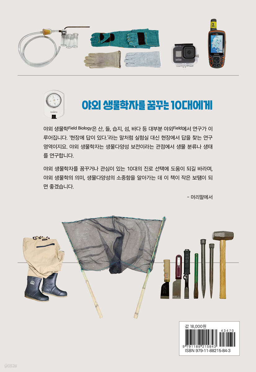 -야생동물을 좋아하는 것과 전문적으로 연구하는 것은 매우 다른 문제입니다. 연구자는 많은 공부를 해야 하고 자신의 전공뿐 아니라 생물학 전반에 대한 폭넓은 지식을 갖춰야 하지요. 예를 들어, 분류학과 생태학을 연구한다면 생리학, 유전학, 분자생물학을 아우르는 공부가 바탕이 되어야 합니다. -생물학에 관심을 보이는 학생이 많지만, 새, 물고기, 곤충 등 특정 생물군에만 관심을 두고 다른 생물에는 거의 관심이 없더군요. 그러나 생물은 혼자 살아갈 수 없습니다. 다른 생물과 끊임없이 경쟁과 협력하며 번성해 나갑니다. 따라서 내가 좋아하는 생물군뿐 아니라 주변에 서식하는 모든 생물을 애정을 가지고 바라보는 넓은 시야가 필요합니다. -어린 시절에 동물과 식물을 만난 경험은 이후에 생물학자가 되는 데 큰 영향을 미칩니다. 서울이나 대도시에 살고 있다면 가능한 많은 경험을 위해 산과 바다로 여행을 떠나거나 시골 친척 집이 있다면 자주 놀러 가는 것을 추천합니다. 더불어 산, 계곡, 하천, 바다, 갯벌 등 다양한 환경에 사는 생물을 관찰하고 기록하는 습관을 기른다면, 이미 생물학자가 될 자격은 충분합니다. -사람들에 의한 기후 변화는 이제 기후 위기라는 단어로 대체되고 있습니다. 이러한 현상을 막기 위해 다양한 노력을 기울이고 있지만 아직은 역부족인 게 현실이지요. 기후가 변화함에 따라 다양한 생물이 급격한 변화를 겪고 있는 문제를 해결하기 위해서는 생물상이 얼마나 빨리 바뀌고 있는지, 어떻게 바뀌고 있는지를 연구해야만 합니다. -최근 생물도 자원으로 인식되어 세계적으로 생물 자원 확보 경쟁이 심각한 상황입니다. 또한 무분별한 개발로 인해 지구가 몸살을 앓고 있으며, 기후 위기와 환경 변화 등의 문제가 강조되는 시점입니다. 이런 사회적 문제에 대응하기 위해 지구상에서 가장 생물다양성이 높은 곤충 자원 연구의 필요성도 높아지고 있습니다. -식물학자를 꿈꾸는 이들에게 선배로서 제가 꼭 해 주고 싶은 말입니다. 우리 주변의 길가, 공원, 학교 등에는 많은 식물이 있습니다. 멀리 가야만 예쁜 식물을 볼 수 있는 것은 아닙니다. 주변에 있는 작은 잡초도 관심 있게 들여다보면 매우 예쁘다는 것을 알게 됩니다. 또한, 우리가 잡초로 취급하는 볼품없이 생긴 흔한 식물도 저마다 이름이 있고, 자기만의 개성이 있습니다. 주변의 식물을 바라보는 그 자체로 공부인 셈이죠. -생물은 생태계 내에서 서로 유기적인 관계를 맺고 살아가기 때문에 한 종의 생물이 멸종되거나 개체 수가 줄어들면 다른 생물에게 그 피해가 전이되고 결국에는 생태계의 균형이 깨지는 결과를 초래합니다. 생물다양성 연구를 통해 생물의 서식 현황을 파악하고 생태계가 건강하게 유지될 수 있도록 보호하는 역할은 생물의 한 종인 우리 인간에게도 매우 중요한 일입니다. -생물에 대한 순수한 관심과 호기심이 있고, 다른 연구자들과 협력할 열린 마음만 있다면, 누구든 생물학자가 될 수 있습니다. 이 글을 읽는 여러분 중에서도 작은 벽돌이든 큰 벽돌이든 함께 멋있는 집을 지을 수 있는 생물 분야의 건축가가 탄생하길 기대해 봅니다. -생물에 관심이 있다면 우선 생물 관련 교육 프로그램에 참여해 보세요. 그리고 자신이 생물의 분류에 관심이 있는지, 생태에 관심이 있는지, 아니면 실험에 관심이 있는지를 살펴보고 자기 적성에 맞는 분야를 선택하세요. 장래 희망이나 직업이 아니라 그저 취미로 시작해도 좋습니다. 사실 취미가 직업이 되는 경우가 상당히 많습니다. 생물을 탐구하고 남들이 몰랐던 부분을 알아가는 쾌감을 알게 되면 자연스레 관련 대학과 관련 직업을 선택하게 될 것입니다. --- 본문 중에서 |