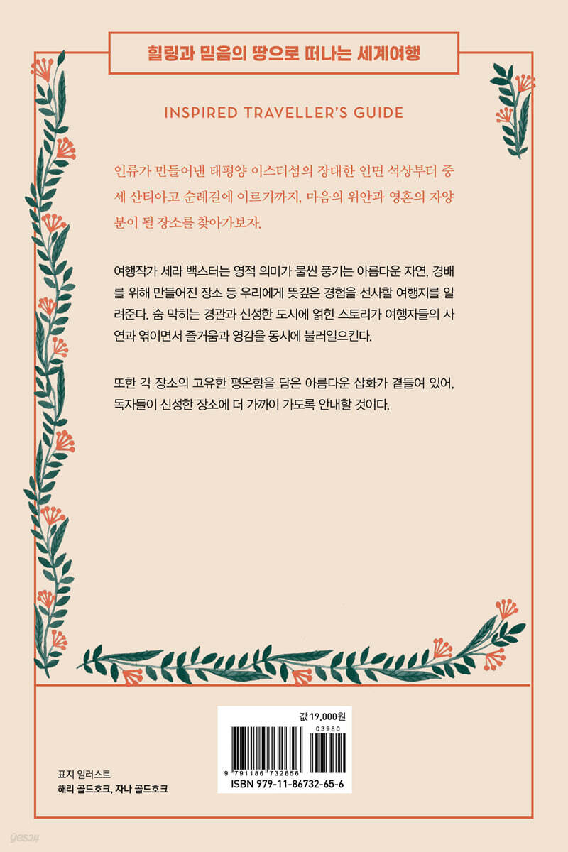 이 책은 전 세계 10여 개 국에서 출판되고 10만 부 이상이 판매된 여행가이드북 ‘Inspired Traveller’s Guide’ 시리즈 중 한 권으로, 종교인들뿐 아니라 여행자들에게도 많은 인기를 얻고 있는 세계적인 성지들을 소개하고 있다. 각 성지들에 얽힌 종교, 역사, 문화, 지리 등 다양한 지식과 흥미진진한 이야기들이 딱딱한 사진이 아닌 감성적이고 아름다운 삽화와 어우러져 더욱 매력적으로 다가온다.