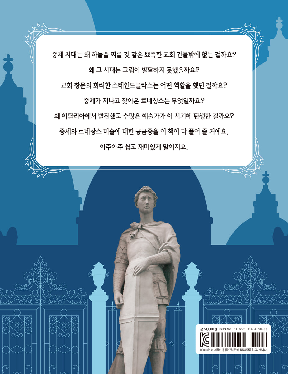 중세와 르네상스의 미술 이야기 미술은 한 시대의 모든 것을 담고 있습니다. 그래서 미술을 아는 것은 역사를 아는 것이고, 미술을 공부하는 것은 역사를 아우르는 통찰을 공부하는 것이기도 합니다. 『신에게서 인간으로 중세와 르네상스 미술』은 제목 그대로 중세 시대의 미술과 르네상스 시대의 미술을 소개하고 있습니다. 그렇다면 왜 중세와 르네상스일까요? 중세 시대의 미술과 르네상스의 미술의 가장 큰 차이점은 무엇일까요? 두 시대의 예술에 차이를 만들어 내는 가장 중요한 키워드는 바로 ‘종교’와 ‘인간’이라고 할 수 있습니다. ‘종교’를 중시한 중세 시대에는 모든 예술을 신을 중심으로 표현했습니다. 그래서 엄숙하고 경직되어 있었지요. 메시지를 전달하는 것이 가장 큰 목적이었으므로 현실적인 재현은 고려되지 않았습니다. 한편 르네상스 시대에는 신과 종교를 내려놓고 ‘인간’에 집중하기 시작합니다. 여전히 종교적인 주제를 다루지만, 현실 세계의 눈으로 성경의 내용을 해석했지요. 바야흐로 신에게서 인간으로 시선이 돌아가게 된 것입니다. 『신에게서 인간으로 중세와 르네상스 미술』은 이렇게 너무나도 다른 두 시대를 아우르며 소개합니다. 중세 시대와 르네상스 시대, 너무도 다른 두 시대를 비교하며 읽는 재미 십자가에 못 박힌 예수를 그릴 때 중세 시대에는 예수가 고통을 느끼는 모습보다는 당당하고 살아 있는 듯한 모습으로 그렸습니다. 신적인 면모를 부각한 것이지요. 반면, 르네상스 시대를 연 작가 치마부에는 고통에 몸부림치는 예수의 모습을 현실적으로 표현했습니다. 아기 예수를 품에 안은 마리아를 그릴 때도 마찬가지였지요. 이렇듯 『신에게서 인간으로 중세와 르네상스 미술』에서는 같은 주제를 각 시대에서 어떻게 해석하고 표현했는지 비교하며 읽는 재미가 있습니다. 르네상스 시대에는 ‘현실 속 사물에 깃든 시점을 발견’하려 했습니다. 르네상스 시대에도 여전히 중세적인 것이 곳곳에 자리하고 있었지만 르네상스 시대 사람들은 이전까지와는 다른 눈으로 세계를 보려고 했습니다. 현실 세계의 아름다움은 신적인 아름다움의 반영이며, 현실의 아름다움을 바라보는 것은 신의 세계로 통하는 최소한의 한 걸음이었지요. 중세에는 현실 세계의 부정이 신의 나라에 이르는 길이었지만 르네상스 시대에는 현실 세계에 대한 긍정이 신의 세계에 이르는 길이 되었습니다. (64쪽) 이 책은 르네상스 시대를 대표하는 예술가들을 그들의 대표 작품과 함께 살펴봅니다. 르네상스 시대 회화의 성격을 만들어 낸 조토, 브루넬레스키가 발명한 원근법을 이론으로 정립한 알베르티, 예술가들에게 더 넓은 창작의 길을 열어 준 레오나르도 다빈치와 르네상스 시대 최고의 조각가인 미켈란젤로까지. 미술사의 한 획을 그은 예술가들과 이들이 서로에게 미친 영향을 따라가다 보면 자연스럽게 당시 사회적 분위기와 시대적 흐름을 이해할 수 있습니다. 또한 이 책에는 풍부한 시각 자료가 담겨 있습니다. 그림과 조각, 건축 이미지를 적재적소에 시원시원하게 담고, 중세 시대와 르네상스 시대 미술의 차이를 한눈에 알 수 있게 배치하여 글의 이해를 도왔지요. 알아듣기 쉬운 설명과 풍부한 시각 자료로 독자들은 어렵게만 느껴지던 미술이 한층 더 쉽게 느껴질 것입니다. 중세 시대와 르네상스 시대 작품이 품고 있는 흥미로운 이야기가 가득한 『신에게서 인간으로 중세와 르네상스 미술』을 통해 중세 시대와 르네상스 시대의 미술을 배워 보아요! |