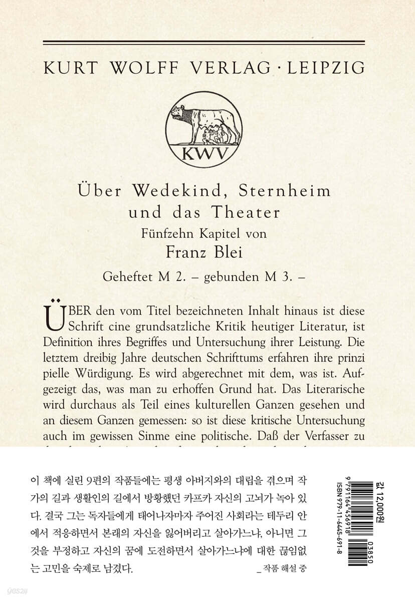 판결 85 시골 의사 105 갑작스러운 산책 115 옷 117 원형극장의 관람석에서 118 오래된 기록 120 법 앞에서 124 학술원에의 보고 127 작품 해설 143 작가 연보 159 |