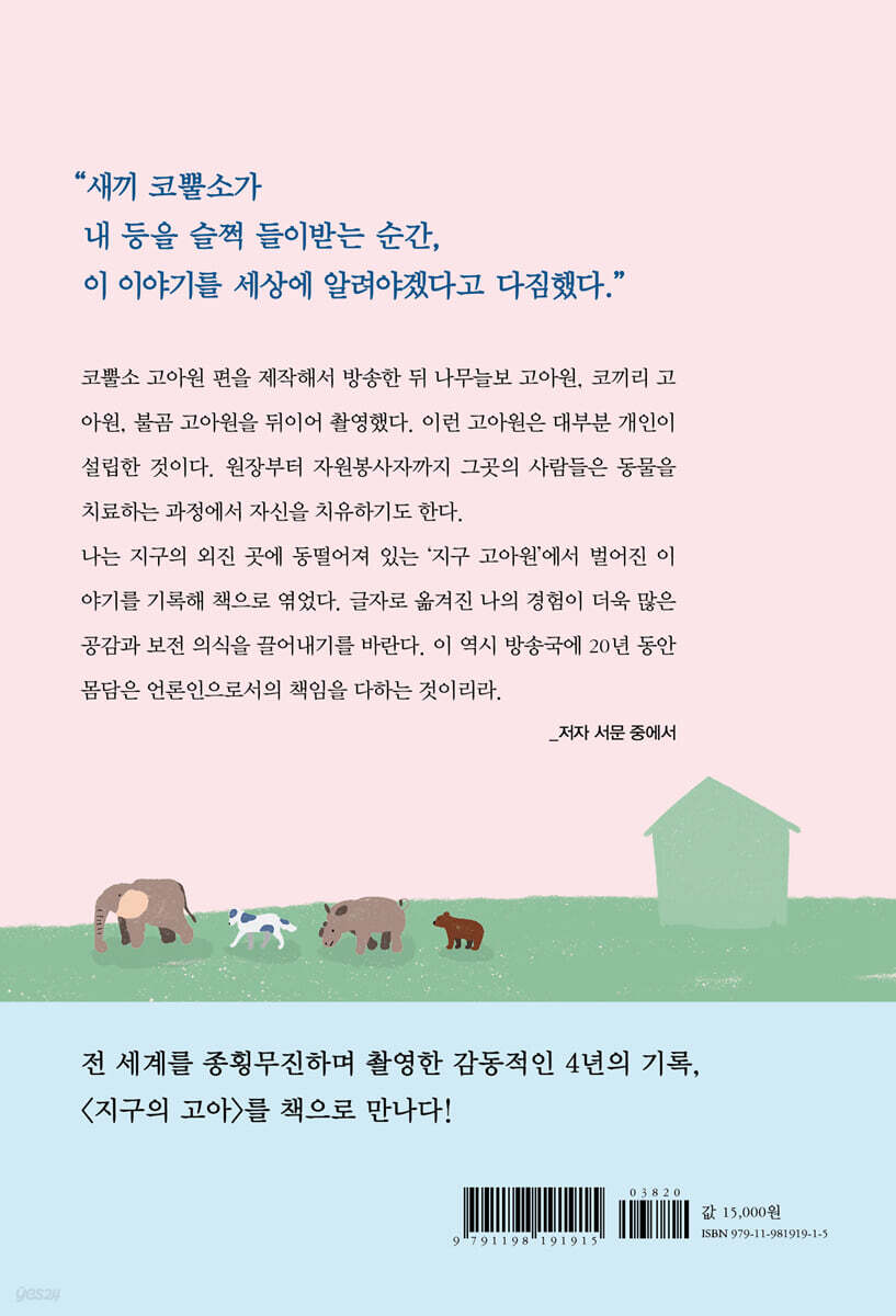 --- p.17 남아공에서 대만으로 돌아온 뒤에도 잭이 나를 들이받던 그 순간은 끊임없이 내 머릿속을 맴돌았다.(물론 TV 프로그램 예고편에서 코뿔소가 방송국 진행자를 들이받는 장면이 한 시간마다 나왔기 때문이기도 하다.) 마음속에서 빅뱅이 터졌다. 동물을 위해 목소리를 내야 한다는 사명이 어깨에 얹힌 듯한 느낌이 들었다. 그래서 나는 오밤중에 이 세상에 존재할지도 모르는 다른 동물 고아원을 미친듯이 찾아봤다. 찾고 또 찾고, 생각하고 생각하다가 불현듯 마음이 움직였다. ‘프로그램을 만들자!’ 제목은 〈지구의 고아〉라고 해야겠다. 이 어미를 잃은 동물들은 의지할 데 없이 외로이 남겨져 지구의 고아가 되어버렸으니까. --- p.37 “하지만 이 어린 생명들은 숲으로 돌아가야 해요. 이 아이들이 성공적으로 야생에 돌아가는 게 저의 가장 큰 원동력이에요.” 내게는 원동력이라기보다는 사명처럼 느껴졌다. 그래서 보답도 바라지 않고 후회도 하지 않는 것이리라. 우리도 인생을 살아가면서 가족이나 배우자, 친구에게는 보답을 바라지 않으면서 희생하지 않던가? 나무늘보는 레슬리의 가족이자 배우자이자 친구였다. --- p.61 나는 차 보닛 위에 펼쳐 놓은 곰 가죽을 어루만졌다. 가슴이 바로 시큰해졌다. 1만 5천 루블(한화 약 30만 원)이라 했다. 이 돈이면 곰 가죽 한 장을 통째로 살 수 있을 뿐만 아니라 흥정도 가능했다. 길가에 세워진 불곰 무덤. 이곳에서 생명을 저울에 달아 매긴 가격은 참으로 저렴했다. 파제트노프 일가는 온 힘을 다해 불곰을 구조했는데……. 보전 속도는 파괴 속도를 영영 따라잡지 못하는 걸까? --- p.112 인류가 생물종 하나를 멸종시키기는 아주 쉽다. 하지만 보전하고 복원하는 데는 몇 배의 노력을 기울여야 한다. 한 가족이 생물종 하나의 운명을 바꾸려고 노력하고 있다. 바보처럼 들릴지 몰라도 파제트노프 일가는 후회나 두려움 없이, 생물과 생태계에 아무런 보답을 바라지 않고 아낌없이 희생하고 있다. --- p.114 취재 과정 중 열정적이고 프로페셔널한 보전 활동가들을 알게 됐다. 멸종위기종을 구하기 위해 몰두하는 환경인들이야말로 사실상 보전되고 보호돼야 할 ‘희귀종’이다. --- p.192 어쩌면 그들의 죽음도 헛되이 희생되지는 않은 셈이다. 그렇게 생각해야만 했다. 그렇지 않으면, 거듭되는 좌절 속에서 어떻게 마음을 가다듬고 다시 도전할 수 있을까? 성공이나 실패, 삶과 죽음을 따지지 않고 보전과 구조에 집중하는 것도 자신의 각오를 다지는 방식의 일종이리라. --- p.200 |