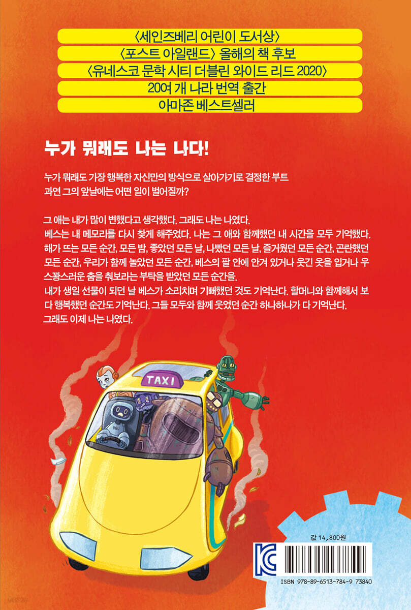 〈나는 한때 장난감이었다. 얼굴에 난 금과 내가 어디서 왔는지 알려주는 2.5개의 메모리만을 가지고 분쇄기에서 깨어났을 때까지는 그랬다. 나는 마침내 옛날 내 주인 베스를 찾았다. 베스는 언제나 내게 친절했고 사랑스러웠다. 하지만 그 애는 내가 많이 변했다고 생각했다. 이제는 나를 그저 평범한 재미있는 로봇이라 생각하지 않는다. 나는 나였다.〉 -본문 중에서 친구들과 함께 온갖 어려움을 이겨내고 옛 주인을 만난 부트, 이제 주인인 베스의 사랑을 받으며 안락한 곳에서 편안하게 살 수 있지만 부트는 옛 주인을 떠나 친구들과 함께 하는 새로운 삶을 선택합니다. 부트는 주인에게 사랑받기 위한 삶이나 누군가가 자신에게 부여한 장난감 로봇이라는 기능에 갇히지 않고 부트다운 삶을 찾고자 합니다. 편안함보다는 새로운 도전을 좋아하는 부트다운 선택에는 당연히 무시무시하지만 재미있고 가슴 벅찬 모험이 기다리고 있습니다. 2. 진정한 친구는 우리가 누구인지 발견하게 합니다. 〈나는 하강 장치에 올라타려다 폭삭 주저앉은 의자에 앉지도 서지도 못한 채 서성거리는 그 커다란 녹슨 로봇을 돌아보지 않을 수 없었다. “의자. 망가졌어.” 그 로봇은 내면 깊은 곳에서 끌어 올린 쓸쓸하고 조용한 목소리로 말했다. 그가 말하는 동안 입 모양으로 나란히 달린 전구가 깜빡였다. “네가 망가뜨렸어.” 그 로봇은 이곳의 다른 로봇과 달랐다. 꼭 우리 같았다. 그 로봇을 두고 떠날 수는 없었다.〉 -본문 중에서 부트와 친구들은 친구 게리의 새로운 코를 찾기 위해 무시무시한 로봇 검사소로 잠입합니다. 그곳은 인간이 사용할 새로운 상품의 한계를 시험하기 위해 테스트용 로봇에게 같은 동작을 수천, 수만 번 반복시키다 완전히 망가지면 폐기해버리는 슬픈 장소라는 것을 알게 됩니다. 부트는 그곳에서 오직 앉았다 일어섰다 만을 수천, 수만 번 반복하느라 몸도 마음도 망가진 의자 테스트용 로봇 러스티를 만납니다. 부트는 그가 자신처럼 질문과 마음을 가진 로봇임을 알아챕니다. 그를 모른 척할 수 없습니다. 하지만 정작 러스티는 그곳을 벗어나기 두려워합니다. 또한 자신이 다른 로봇과 달리 지각이 있는 로봇이라는 것조차 알지 못합니다. 하지만 부트와 친구들은 자신들과 꼭 닮은 낡고 부서진 로봇, 러스티를 설득해 결국 탈출시킵니다. 3. 망가진 마음은 어떻게 고치나요? 친구들의 도움으로 무사히 로봇 검사소를 탈출한 러스티, 그런데 어쩐 일인지 하나도 기뻐하지 않습니다. 오랫동안 주어진 기능만을 반복적으로 수행해온 러스티는 이 모든 상황이 불편해 보이기만 합니다. 또한 러스티는 오랫동안 해오던 의자 테스트하기 임무를 벗어나자 자기 삶의 목적이 사라져버렸다고 여깁니다. 친구들의 여러 노력에도 불구하고 러스티는 여전히 웃지 못합니다. 그리고 자신의 마음이 망가졌다고 반복적으로 말합니다. 친구들은 러스티의 망가진 마음을 회복시키려고 새로운 모험을 펼칩니다. 과연 친구들은 러스티의 망가진 마음을 어떻게 고칠 수 있을까요? 누군가가 부여한 임무가 아닌 스스로의 삶의 목적을 찾도록 러스티를 도울 수 있을까요? 4. 결함은 우리를 가두기도 하지만 나아가게도 합니다. 부트와 친구들은 자신의 결함과 그 결함이 주는 상처를 핑계 삼아 두려움에 갇히지 않고 서로 의지하며 세상을 향해 새로운 모험과 탐험을 감행합니다. 출발은 결함을 해결하려는 것이었지만 정작 위기의 순간이나 결정적인 순간에 그들의 결함은 오히려 문제를 해결하는 열쇠가 됩니다. 그렇게 결함은 서로를 이어주는 매개가 되기도 하고, 오히려 자신을 특별하게 만드는 원천이 될 수 있다는 것을 깨닫습니다. 이렇게 부트와 친구들의 이야기는 우리가 가진 수많은 결함과 슬픔, 상처, 아픔에도 불구하고 우리는 얼마나 더 나은 존재가 될 수 있는지, 어떤 경우에도 우리는 혼자가 아니라는 것을 감동적으로 그려내고 있습니다. 5. 나다운 삶이 주는 회복력과 희망에 대한 잊힐 수 없는 이야기 부트와 친구들이 나다운 삶을 통해 뿜어내는 기쁨과 성장의 에너지는 한 단계 더 나아가 예전의 자신과 꼭 닮은, 상처와 결함을 가진 다른 친구들을 외면하지 않고 기꺼이 그들에게 손을 내밀며 함께 회복과 희망의 새로운 씨앗을 뿌립니다. 이 책은 나다운 삶을 선택하고, 자기 삶의 목적을 스스로 찾는 것이 얼마나 어려운지 잘 보여줍니다. 그것이 어렵고 두려워 자신의 의지가 반영되지 않은 누군가나 혹은 세상이 부여한 임무만을 수행하려 할 때 우리 삶이 어떻게 움츠려드는지 잘 보여줍니다. 반대로 우리가 두려움을 극복하고 자기다운 삶을 찾아 세상을 향해 나아가려할 때, 무엇이 우리에게 용기를 부여하고 계속나아가게 하는지, 또한 어떤 선택이 자기다운 것인지, 어떨 때 우리가 진정으로 살아있다고 느끼게 하는지도 잘 보여줍니다. |