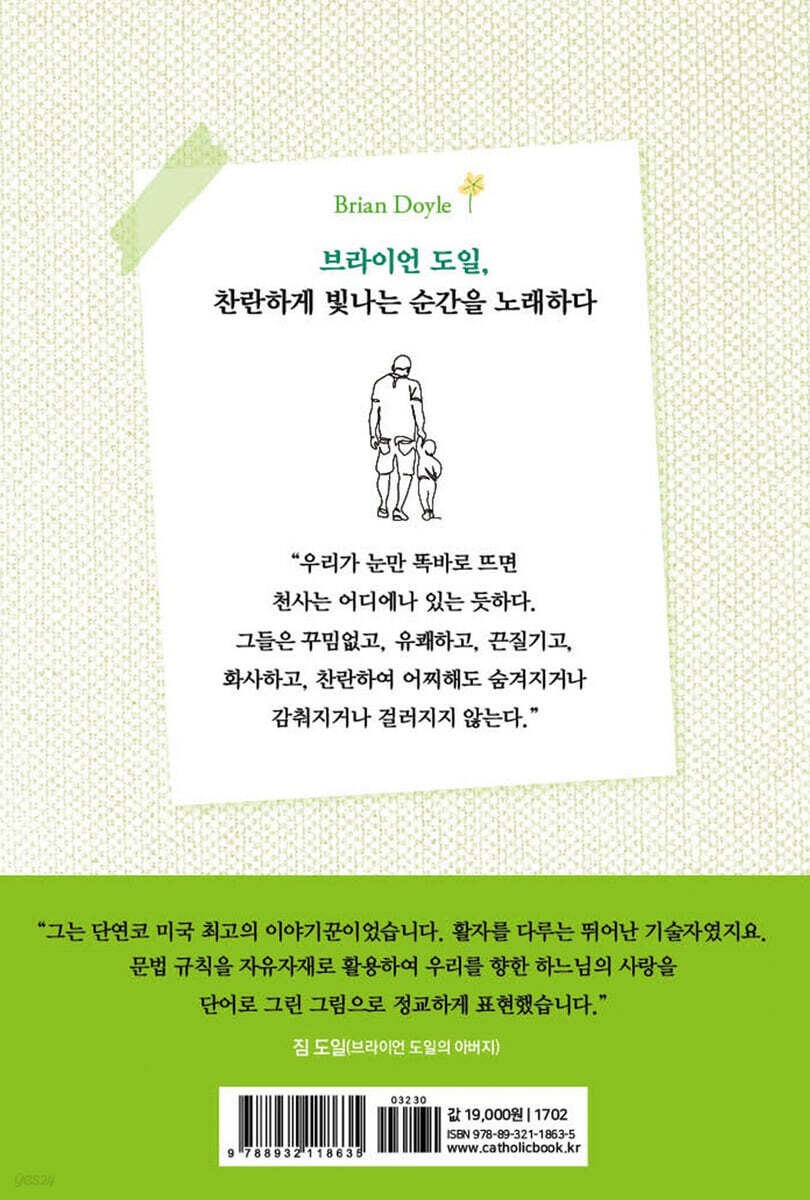 다시 돌아오지 않을 작지만 따뜻한 순간들을 포착하다 한국에서 처음 소개하는 브라이언 도일의 『찬란한 존재들』은 평범하고도 사소한 일상을 잡아낸 기록이자, 그 속에서 얻게 된 작은 깨달음들의 모음집이다. 브라이언 도일은 미국 문학계에서도 상당히 개성 강한 문체의 소유자로 알려져 있다. 아주 긴 문장을 구사하거나 비슷한 의미의 단어를 자주 반복하여 사용하는 등 기존 영어 문법의 규칙을 자유롭게 넘나든다는 특징이 있다. 그러나 이 책에서는 그의 독특한 문체보다도 그가 세상을 바라보는 태도에 주안점을 두고 싶다. 저자는 평범한 순간과 일상적인 만남을 중심으로 이야기를 풀어 나간다. 그 이야기 속에서 세상과 그 안에 사는 사람들을 진지하고 예리하게 꿰뚫어 보는 가운데 예상치 못한 아름다움을 발견하기도 하고 믿음과 은총의 깊이를 더하는 깨달음들을 얻기도 한다. 1장 ‘천사는 어디에나 있는 듯하다’, 2장 ‘사랑의 빛을 가득 머금은 존재들’, 3장 ‘저녁 무렵의 사소한 기억’, 4장 ‘잊지 못할 순간’이라는 순서대로 가족, 성당, 부모, 꿈, 육아, 게임, 아픔, 야생동물, 야구, 농구, 낚시 등 다양한 주제의 이야기가 펼쳐진다. 그가 들려주는 진솔한 글 속에서 우리 역시 다양한 삶과 사람 이야기에 감동하고 감탄하게 될 것이다. 또 어떻게 해야 그만큼 일상에서 많은 사랑을 발견하고 나눌 수 있을지 생각해 보게 되리라. 활자를 다루는 뛰어난 기술자, 하느님의 사랑을 정교하게 그려 내다 이 책은 ‘신앙 에세이’일까? 책의 첫머리에 등장하는 추도사에서 저자의 아버지는 브라이언 도일을 이렇게 소개한다. “그는 단연코 미국 최고의 이야기꾼이었습니다. 활자를 다루는 뛰어난 기술자였지요. 문법 규칙을 자유자재로 활용하여 우리를 향한 하느님의 사랑을 단어로 그린 그림으로 정교하게 표현했습니다.” 그만큼 브라이언 도일의 글이 믿음을 바탕으로 한다는 특징을 찾을 수 있다. 아일랜드계 가톨릭 가정에서 태어나 신앙심 깊은 부모 밑에서 자란 덕에 가톨릭이라는 종교가 삶을 살아가는 데 단단한 기준이 된 것이다. 이를 바탕으로 저자는 어린 시절 성당에서, 전례 중에 있었던 일을 어제 일처럼 추억하기도 하고, 세상에서 만나는 다양한 사람 속에서 하느님의 거룩함을 느끼기도, 이웃의 아픔을 내 일처럼 아파하는 등 교회의 가르침을 따라 일상의 많은 순간을 애정 어린 따뜻한 시선으로 바라보고 있다. 누군가에게 삶은 하염없이 흘러가는 것일 수도 있다. 그러나 이 책을 읽다 보면, 자연히 일상을 돌아보게 되고 그 안에서 아직 미처 발견하지 못했던 것이나 주변에 존재하는 다양한 사람들을 떠올려 보며 매 순간 쏟아지는 찬란한 기적에 관해 곱씹어 보게 된다. 그리고 그 기적에 감사하는 마음으로 하느님께서 우리 곁에 언제 어디에나 계신다는 점을 느낄 수 있다. 어쩌면 당신은 이제껏 그 은총의 손길을 제대로 바라보지 않았을 뿐이다. 『찬란한 존재들』에서 비추는 오색찬란한 삶의 감동 속에 머물며 우리에게 다가오는 놀라운 영적 속삭임을 체험해 보길 바란다. 이제껏 제대로 마주하지 않았던 삶의 기쁨을 한 조각 음미하고 나를 어루만져 주시는 분 가까이 손을 뻗게 될 테니까. |