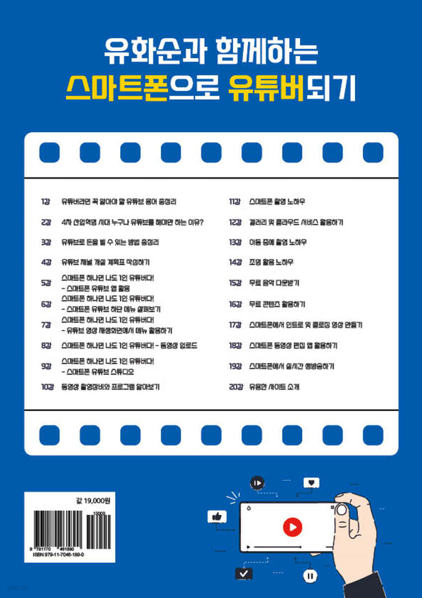 브랜드 계정 채널(Brand channel) 구글에 가입하여 해당 아이디로 본 채널을 개설한 이후 추가적으로 개설한 서브 채널을 말합니다. YPP(YouTube Partnership Program) 유튜브 파트너십 프로그램 유튜브 파트너십 프로그램은 유튜브 사용자들이 동영상 업로드를 통해 수익을 창출하는 기회를 제공하는 프로그램입니다 범퍼 광고(Bumper AD) 범퍼 광고는 건너뛸 수 없는 인스트림 광고와 비슷하고, 동영상 전후, 중간에 6초 이하의 짧은 광고를 말합니다. 덕후, 오덕 -기존 사용하던 영어 'mania'와 같은 의미로 무언가에 열중하는 사람, 본인이 좋아하는 특정 영역에 대한 취향이 뚜렷한 이들을 지칭하는 용어로 --- pp.18~29 4차 산업혁명 시대 누구나 유튜브를 해야만 하는 이유? 직장인들의 경우에도 과거와 달리 투잡, 쓰리잡을 하는 경우가 많습니다. 직장인들이야말로 미래를 준비하는 차원에서라도 유튜버로서 활동해야 합니다. 과거에는 특정인이나 특정 콘텐츠가 인기가 많고 돈이 되었습니다. 하지만, 요즘은 흥미 위주의 콘텐츠를 넘어서 다양하고 전문적인 지식을 공유하는 유튜버들이 시청자들과 소통하면서 유튜브 세계를 키워나가고 있습니다. --- p.39 유튜브로 돈을 벌 수 있는 방법 총정리 1. 구글 애드센스 광고로 돈을 벌 수 있습니다. 구글 애드센스 광고는 유튜브 영상 앞에 나오는 광고를 말합니다. 구독자 1,000명 1년 내 총 시청 시간 4,000시간 이상이 되어야 조건이 됩니다. -구글 애드센스란? 구글에서 운영하는 광고 수익 배분 사업입니다. 2. 유튜브 멤버십으로 돈을 벌 수 있습니다. 매달 정기적으로 일정 금액을 크리에이터에게 후원하는 제도를 말합니다. 멤버십 수익 배분은 7:3으로 수익 의 70%를 유튜버가 가져가는 구조입니다. 구독자 3만 명 이상인 크리에이터들만 가능한데 게임채널은 1,000명 이상이면 된다고 합니다. 3. 유튜브 슈퍼 챗(Super Chat)으로 돈을 벌 수 있습니다. 유튜브의 실시간 스트리밍 방송에 들어 있는 슈퍼 챗 기능을 이용해 수익을 버는 방식입니다. 구독자 1,000명 이상 만 18세 이상이어야 합니다. --- pp.41~42 유튜브 채널 개설 계획표 작성하기 [ 유튜브 채널 개설 계획표 ]는 SNS소통연구소 블로그에서 다운받으실 수 있습니다. *마케팅 타깃 마케팅의 기본은 고객을 세분화하는 것입니다. 처음 유튜버 활동을 하는 사람들은 자신이 만든 콘텐츠가 남녀노소 누구에게나 통용된다고 생각하면서 영상을 제작하게 되는데 현 실은 그렇지 않습니다. [ 60대 이상 스마트폰 사용자들은 꼭 보셔요 ]라고 했는데 조회 수가 24,307회나 나왔습니다. *홍보 키워드(검색어) 만들기 예를 들어 [ 남성 화장품 ]을 소개하는 영상이라고 한다면 유튜브에서 많이 검색되는 관련 키워드를 찾아보는 것이 우선이지만 네이버가 가장 많이 사용하는 검색 사이트이므로 네이버 검색창에 [ 남성 화장품 ]이라고 검색해 보면 하단으로 관련된 키워드들이 보이는데 네이버에서는 [ 연관 검색어 ]라고 하지만 이런 키워드들도 함께 섞어서 사용하면 시청자를 모으는 데 조금이라도 도움이 될 것입니다. --- p.47 스마트폰 하나면 나도 1인 유튜버다! - 스마트폰 유튜브 앱 활용 [ 두 번 탭하여 탐색 ] 시간이 초 단위로 보입니다. 15초를 터치합니다. --- p.53 자막 1 재생 중인 동영상 화면 우측 상단 [ 설정(톱니바퀴 모양) ]을 터치합니다. 2 [ 자막 ]을 터치합니다. --- p.58 전체화면 모드가 작동되지 않을 경우(공유받은 영상의 경우) 1 카카오톡으로 [ 유튜브 URL 링크 ]를 공유받은 경우에 활용할 수 있습니다. 2 ② [ 다른 기기에 연결 ]은 TV나 주변 다른 기기에 연결하여 시청할 수 있습니다. --- p.62 유튜브 숏츠(YouTube Shorts) 만드는 3가지 방법 1. 촬영과 편집과 업로드를 유튜브(YouTube)에서 합니다. 2. 촬영은 다른 앱으로 하고 편집과 업로드를 유튜브(YouTube)에서 합니다. 3. 촬영과 편집은 다른 앱에서 하고 업로드만 유튜브(YouTube)에서 합니다. --- p.63 동영상 만들기 [ 동영상 업로드 ]를 터치합니다. 2 [ 갤러리 ]에서 영상을 선택합니다. 3 [ 다음 ]을 터치합니다. [ 세부정보 추가 ] 동영상 제목, 설명 추가, 공개 상태(공개, 일부 공개, 비공개) 중에 하나를 선택합니다. --- p.65 라이브 스트리밍 시작 1 유튜브 라이브 스트리밍은 일반적으로 유튜브에서 방송하는 것을 의미합니다. [ 더하기 버튼 ]을 터치합니다. 2 [ 라이브 스트리밍 시작 ]을 터치합니다. --- p.66 동영상 업로드 ㆍ동영상 업로드 - 일반 영상 업로드 할 때 1 ① 유튜브 하단 메뉴에 [ + ]를 터치합니다. 2 ① [ 동영상 업로드 ]를 터치합니다. 3 ① 갤러리에 내가 준비한 60초 이상의 업로드 할 영상을 찾아 선택합니다. (15분 이상 일반 동영상을 첫업로드 시 구글 계정을 문자 메시지 또는 자동 음성 통화로 인증코드를 받아 계정 확인을 한 후 가능하며 60초 이하 영상의 경우 Shorts 동영상으로 변경하여 올릴 수 있습니다.) - Shorts 동영상 설명 PC에서 삽입하기 -① PC에서 유튜브 내 계정으로 들어가 [ 내 동영상 ]을 클릭해 동영상 목록 화면으로 이동합니다 --- p.78 스마트폰 하나면 나도 1인 유튜버다! - 스마트폰 유튜브 스튜디오 - 내 채널 분석하기 1 ① [ 내 채널 ] - [ 동영상 관리 ]로 들어가서 업로드된 동
