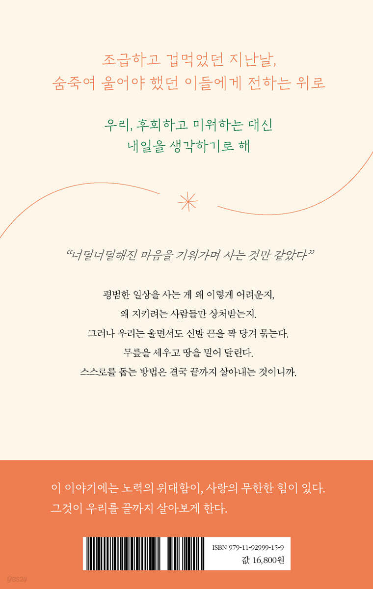 나라는 사람으로 이 세상에 홀로서기까지, 치열하고 혹독했던 성장의 기록 왜 나쁜 짓을 저지른 사람들은 떳떳하게 살고, 일상을 지키려던 사람들만 상처받을까? 처음 결혼생활을 시작했을 때는 알지 못했다. 남편이, 시댁 식구들이 어떤 사람들인지. 무시와 폭언, 심지어는 폭력까지 저지른 남편과 그 가족들로부터 벗어나려고 안간힘을 썼다. 아이들 손을 잡고 뛰쳐나오니 막막한 현실이 들이닥쳤다. 양육비 이야기를 꺼내려고 하면 그럴 바엔 아이들을 돌려보내라는 남편 덕에 달동네에서 서러운 홀로서기를 시작했다. 세상이 좋아졌다지만, 싱글맘으로 사는 것은 여전히 힘에 부쳤다. 별거 후 보이지 않는 벽에 수없이 부딪혀왔다고 저자는 고백한다. 아이들을 데리고 외식하는 것도, 이웃과의 사소한 의견 차이로 다투는 것도 눈치 보이고 두렵기만 했다. 아무도 손가락질하지 않았지만, ‘모난 돌’로 보일까 끊임없이 검열하고 채찍질했다. 우리는 이 처절한 성장기를 통해 우리 사회의 빈틈을 발견한다. 평범한 하루가 누군가에겐 한없이 버거울 수 있음을 깨닫는다. “더 이상 가난하게 살지 않겠다” 돈 한 푼 없이 시작한 홀로서기, 그 끝에 맞이한 맑은 날! 직장생활을 오래 해왔지만, 재테크 지식이 전무했던 저자는 무자본으로 별거 생활을 시작한다. 보험 대출을 받아 마련한 단돈 3천만 원짜리 달동네 전셋집조차 귀하기만 했다. 그러나 아이들은 하루가 다르게 자라고, 그만큼 낯설고 낙후된 환경에 대한 불안감도 점점 커졌다. 처음엔 요령도 없이 무작정 허리띠를 졸라맸다. 남들은 하나씩 다 가졌다는 비싼 가방도, 번쩍번쩍한 새 차도 없지만, 바로 앞에 주차장이 있는 집에 살 수 있다면, 아이들이 조금이나마 불편함을 모르고 자란다면 뭐든 참을 수 있었다. 삶을 바꾸고자 매일 새벽 4시에 일어나 시커먼 어둠 속을 달리기 시작했다. 밥 먹을 시간, 잠잘 시간을 쪼개 경제 신문을 읽고, 운전하는 짧은 시간에는 부동산 강의를 들었다. 운 좋게 서울에 소형 아파트 하나를 얻었지만, 내 것 같지 않았다. 채찍질은 계속됐다. 드라마도, 영화도 보지 않고 재테크 공부에 몰두했다. 경매를 공부하고, 휴가 기간에는 발이 다 터지도록 걷고 또 걸으며 임장을 다녔다. 그렇게 낡아빠진 다세대 주택에서 월세 아파트로, 또 자가 아파트로 한 계단씩 밟아 올라갔다. 저자는 마음이 무뎌질 때마다 이렇게 다짐한다. “더 이상 가난하게 살지 않겠다.” 속물 같아 보일지 몰라도 기댈 데 없는 저자의 삶에서 믿을 수 있는 건 그것뿐이었다. 이 책은 넘어질 용기가 없는 사람들의 길잡이다. 때로는 우리 앞에 닥친 일을 똑바로 바라보아야 한다. 휘청이며 여기저기 부딪히느라 멍투성이가 되는 것보다는 차라리 대차게 넘어진 뒤 털고 일어나는 것이 낫다. 안타깝기만 했던 저자의 일상이 점점 제 방향을 찾는 것을 지켜보면서 우리는 위로와 더불어 동기 부여를 얻을 수 있다. 오뚝이처럼 일어나 다시 걷는 저자의 뒷모습을 바라보며 그동안 외면했던 우리 자신도 응원할 수 있게 된다. |