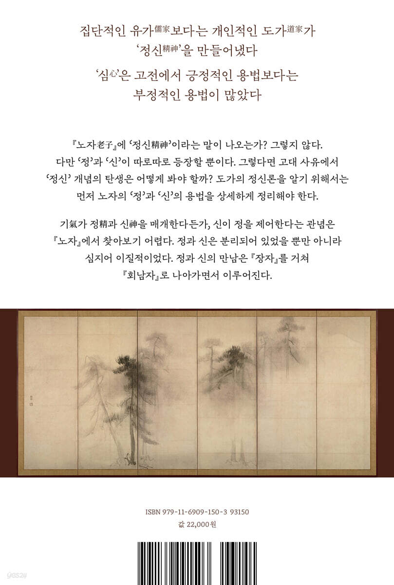 제1부 도가의 정신 1장 노자의 정신론 1. 정이란 무엇인가? · 2. 정기 · 3. 알맹이 · 4. 골짜기의 정신 · 5. 신비한 그릇 · 6. 신령 · 7. 귀신 · 8. 정과 신 2장 장자의 정신론 1. 노자와 장자 · 2. 정: 정기 · 3. 신: 신명 · 4. 정신과 도 · 5. 자유로운 정신 3장 『회남자』의 정신론 1. 정신의 탄생 · 2. 정신론의 의미 · 3. 정: 하늘과 땅의 정기 · 4. 신: 형체에 대한 정신의 우위 · 5. 정신의 가르침 · 6. 사람의 정신 제2부 유가의 정신 4장 『대학』과 『중용』의 정신론 1. 『예기』의 발전 · 2. 정신의 역사 · 3. 『대학』의 정 · 4. 『중용』의 정 · 5. 『중용』의 신 · 6. 『예기』와 정신 · 7. 정신보다는 귀신 5장 공맹의 정신론 1. 도가와 다른 유가 · 2. 『논어』의 신 · 3. 『논어』의 정 · 4. 『맹자』의 신 · 5. 초월에서 민본으로 6장 순자의 정신론 1. 정신의 역사 · 2. 유가와 도가 사이 · 3. 정: 본래의 우수한 기능 · 4. 신: 전통적이면서도 전통적이지 않은 · 5. 대신과 신명 · 6. 정신에서 신명으로 제3부 심론 7장 노자의 심론 1. 마음 · 2. 주자와 양명 · 3. 유가와 도가 · 4. 노자의 마음 · 5. 노자 이후 8장 장자의 심론 1. 마음의 두 뜻 · 2. 문제 제기 · 3. 이루어진 마음 · 4. 기계의 마음 · 5. 도둑의 마음 · 6. 늘 그러한 마음―노자와는 다른 · 7. 개념의 겉과 안 9장 맹자의 심론 1. 맹자의 역사성 · 2. 진심과 인심 · 3. 존심 대 방심 · 4. 노심 대 노력 · 5. 항심과 본심 · 6. 양심 · 7. 사단지심 · 8. 심과 기 참고문헌 · 책에 실린 글의 출전 · 찾아보기 |