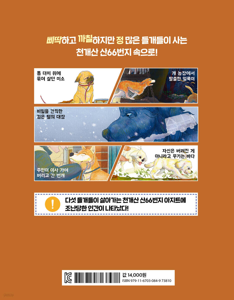 천개산 산66번지의 개들 / 죽거나 말거나 무슨 상관이야? / 이름은 없어도 버림받진 않았어 / 좋은 사람은 없어 / 어묵이 사라졌다 / 바다야, 아프면 안 돼 / 대장이라고 봐주지 않아 / 대장과 번개의 충돌 / 번개가 사라졌다 / 들개가 뭔지 알아? / 산 밑으로/ 흰 개를 만나다 / 딱 한 번만 더 훔치는 거야 / 우리는 똑같은 들개야 / 나의 새로운 이름
