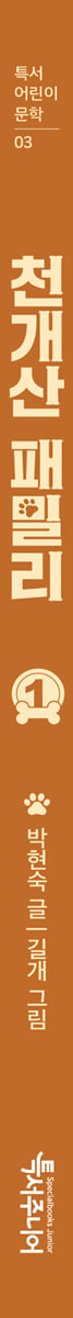 세상에 꼭 전하고 싶었던 메시지! 『천개산 패밀리』 속 들개들에게 ‘이름’은 의미가 크다. 개 농장에서 탈출한 얼룩이처럼 ‘이름 없는 개’는 시시하고 보잘것없는 개라는 말처럼 들리지만, 유기견 바다와 미소, 번개처럼 이름이 있는게 좋기만 한 것은 아니다. 이름을 붙여준 주인에게서 버려졌다는 것을 의미하기 때문이다. 잠깐의 외로움을 달래기 위해 키우기 시작한 동물들을 버리고 나면, 그들은 어디로 향할까? 박현숙 작가는 주인에게서 버려진 개들이 모여 살아가는 ‘천개산’이라는 새로운 공간을 탄생시켰다. 능청스러운 문장과 상상력 넘치는 사건으로 이끌어 나가는 버려진 개들의 이야기가 흥미롭다. 그간 많은 동화로 어린이 독자들의 사랑을 받은 박현숙 작가가 꼭 쓰고 싶었던 이야기, 자신 있게 선보이는 역작이다. 『천개산 패밀리』에 등장하는 캐릭터들은 언젠가 제가 실제로 만났던 강아지들이랍니다. 우리 독자들이 『천개산 패밀리』를 읽으며 마음이 따뜻한 사람이 되었으면 좋겠어요. -작가 인터뷰에서 ‘함께’라는 따뜻함을 전하는 동화와 이야기의 매력을 극대화시키는 애니메이션처럼 생생한 그림! 들개들끼리 살아가는 산속 생활은 척박하고 위험하지만, 어려움 속에서도 천개산 들개들은서로를 위하는 나눔과 배려 그리고 ‘함께’라는 따뜻함을 배워 나간다. 주인이 산속에 버리거나, 이사를 하며 빈 동네에 버리고 갔어도 끝까지 인간을 미워하지 못한다. 조난당한 인간을 두고 도울 것이냐 돕지 않을 것이냐 논쟁이 일기도 하지만 자신들이 할 수 있는 최선의 도움을 주려 애를 쓴다. ‘천개산 패밀리’의 모습은 반려동물을 선택할 때의 신중함과 끝까지 가족이라는 끈을 놓아서는 안 된다는 책임감을 불러일으킨다. 눈길을 사로잡는 그림도 빼놓을 수 없는 포인트다. 박현숙 작가가 써낸 흥미진진한 이야기의 매력을 더욱 극대화시키는 ‘길개’ 작가의 그림은 애니메이션을 보는 듯이 생생하면서도 상황을 재해석한 장면은 단연 압권이다. 디지털 작업과 더불어 손으로 색연필 채색을 함께해 가득 담은 정성이 전해진다. 상상력을 자극하는 그림과 재치 있는 묘사로 어린이 독자들이 이야기에 더욱 깊이 빠져들게 만든다. 어린이 독자들은 『천개산 패밀리』를 읽고 나면, 동물이 단순히 예쁘고 귀여운 인형이 아니라 우리와 함께 어울려 살아가는 생명이라는 것을 마음으로 느끼게 될 것이다. 창작노트 (…) 반려견을 키우는 사람들이 점점 늘어나는 만큼 개들이 더 많이 버려지고 있어요. 끝까지 책임질 수 없다면 처음부터 키우지 말아야 해요. 작고 귀여워서 샀는데 덩치가 커지고 보기 싫어졌다고 버리고, 아프다고 버리고, 귀찮다고 버려요. 개들은 인형이 아니에요. 시간이 지나면 덩치가 커지고 나이가 들면 아파요. 손도 많이 가요. ‘들개 무리가 사람이 사는 마을에 나타나다, 가축을 해치다’ 텔레비전에서 또 이런 장면을 보면 마음이 아플 거예요. 버리지 않고 버려지지 않고 사람과 동물이 함께 행복한 세상이 되었으면 좋겠어요. |