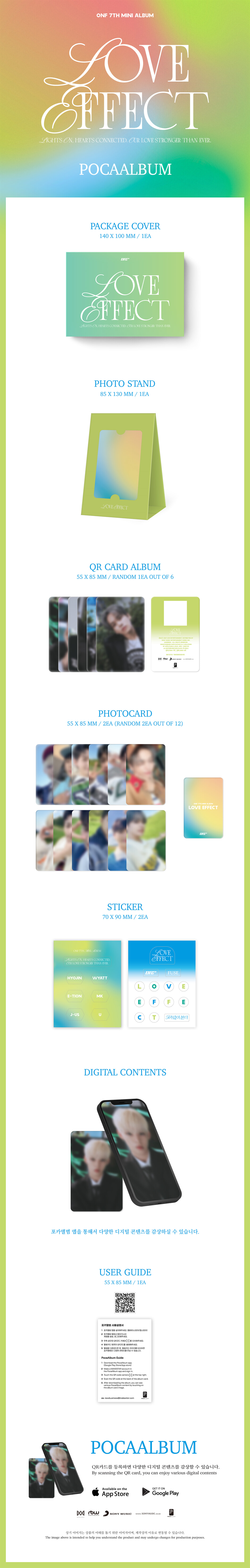 - PACKAGE COVER : 140 X 100 MM / 1EA - PHOTO STAND : 85 X 130 MM / 1EA - QR CARD ALBUM : 55 X 85 MM / RANDOM 1EA OUT OF 6 - PHOTOCARD : 55 X 85 MM / 2EA (RANDOM 2EA OUT OF 12) - STICKER : 70 X 90 MM / 2EA - DIGITAL CONTENTS - USER GUIDE |
