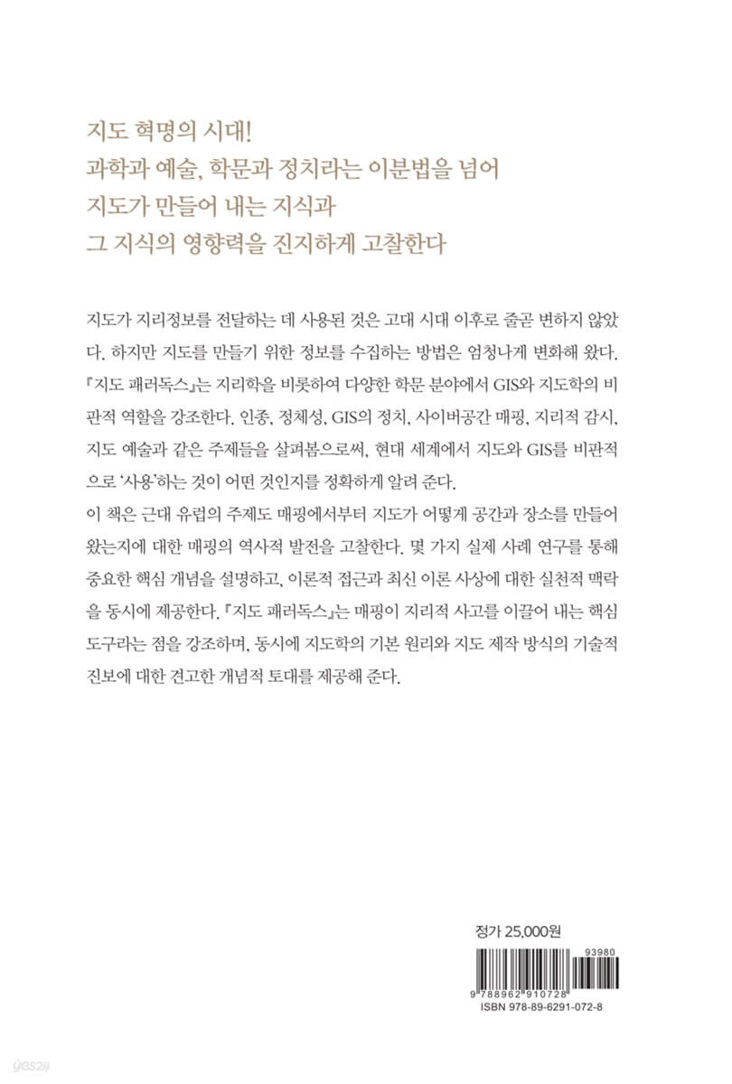 감사의 글 제1장 지도: 부적절한 사용에 대한 불편한 시선 제2장 비판이란 무엇인가? 제3장 지도 2.0: 지도 매시업과 새로운 공간 미디어 제4장 비판 지도학, 비판 GIS란 무엇인가? 제5장 매핑이 어떻게 과학이 되었나? 제6장 지도와 통치: 지도의 정치경제학 제7장 지도학 해체의 정치사: 할리, 골, 페터스 제8장 비판 이후의 GIS 제9장 지도와 감시 제10장 사이버공간과 가상 세계 제11장 인종과 정체성의 지도학적 구성 제12장 공간의 시학: 예술, 아름다움, 상상력 제13장 에필로그: 지도학적 불안을 넘어? 참고문헌 찾아보기 |