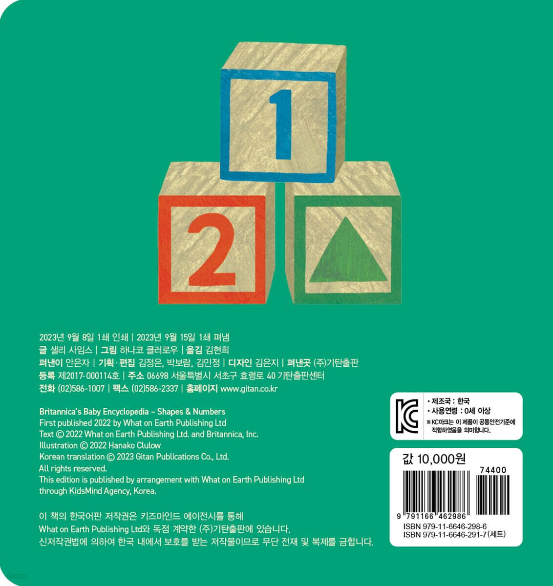 브리태니커의 유일한 아기 지식 백과 세계 백과사전의 상징이라 할 수 있는 브리태니커에서는 250여 년 동안 어린이와 청소년, 성인 들을 위한 수많은 도서들을 만들어 왔어요. 하지만 0~3세 아기를 위한 책은 한 번도 나온 적이 없었지요. [브리태니커 첫 베이비 백과]가 바로 브리태니커에서 처음으로, 그리고 유일하게 만든 아기를 위한 지식 그림책이랍니다. 믿을 수 있는 브리태니커 전문가들이 오랜 시간 공들여 연구하고 검증한 내용이 담긴 [브리태니커 첫 베이비 백과]를 우리 아기에게 선물해 주세요! STEAM 주제로 인지, 논리, 감성을 골고루 발달시켜요! 4차 산업혁명 시대를 맞이하여 과학, 기술, 공학, 인문·예술, 수학 교과 간의 통합적인 교육 방식인 STEAM 교육(융합인재교육)의 중요성이 강조되고 있어요. 하지만 STEAM 주제를 다루고 있는 아기 책은 찾기 어려워요. [브리태니커 첫 베이비 백과]는 아기 때부터 자연스럽게 STEAM 주제를 접할 수 있도록 도와주어요. [브리태니커 첫 베이비 백과] 시리즈에는 동물, 식물, 우리 몸, 음식, 기계, 미술과 음악, 모양과 숫자, 아름다운 세상 등 아기가 꼭 알아야 하는 8가지 필수 주제를 모두 담았어요. 이러한 통합적인 교육 방식은 아기들의 흥미와 관심을 이끌어 줍니다. 거기다 주제에 알맞은 정확한 정보들은 아기의 인지 능력을 향상시켜요. 식물이 자라나는 과정, 크기와 수량 비교 등을 통해 논리적 사고가 발달하지요. 그림이나 음악이 사람들에게 끼치는 긍정적인 영향과 가족과 함께 식사하는 즐거움 등은 아기의 감성 발달까지 이끌어 줍니다. 간결한 문장과 의성어·의태어로 언어 능력 업! ‘지식 그림책’ 하면 딱딱하고 긴 문장이 떠올라요. 하지만 [브리태니커 첫 베이비 백과]는 책을 처음 접하는 아기들도 이해할 수 있는 글을 실었어요. 복잡하지 않은 짧은 문장을 사용했으며, 문장 안에서는 아기들이 가정에서 흔히 접하는 단어들을 담았지요. 페이지마다 그림과 어울리는 의성어·의태어도 담겨 있기 때문에, 부모님이 또박또박 큰 소리로 읽어 주면 아기는 옹알옹알 따라 하며 자연스레 말문이 트이고 풍부한 표현력을 기르게 됩니다. 다채로운 볼거리와 다양한 등장인물 [브리태니커 첫 베이비 백과]는 8가지 주제를 담은 만큼 다채로운 볼거리가 있어요. 아동 심리학을 공부한 그림 작가가 그려 낸 따뜻하고 풍부한 색감의 일러스트를 통해 지구 곳곳의 풍경, 다양한 동식물, 가전제품부터 중장비까지 기계들도 볼 수 있지요. 아직 집 밖 세상을 경험해 보지 않은 아기들에게 넓은 세상을 만나는 기회를 제공합니다. [브리태니커 첫 베이비 백과]가 특별한 이유 중 하나는 바로 다양한 등장인물입니다. 여러 인종의 사람들과 휠체어를 탄 아이, 보청기를 낀 아이 등 장애를 가진 아이들도 나오거든요. 우리가 사는 세상에는 나와 다른 모습의 사람들이 함께 어우러져 살아간다는 걸 보여 주며, 바른 인성 형성에 도움을 주지요. |