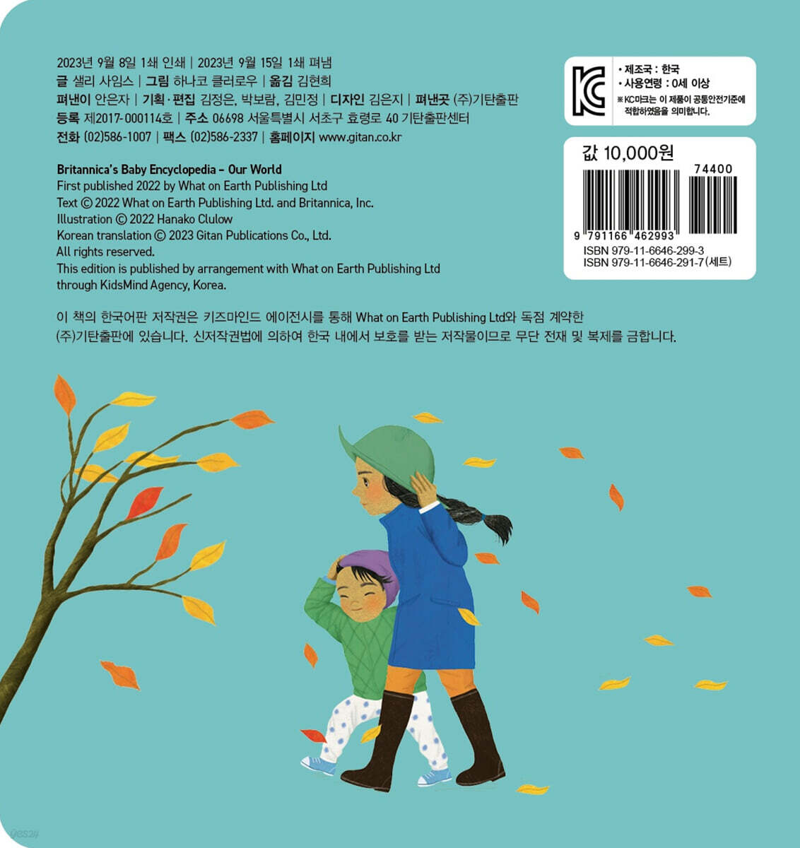 우리가 사는 세상을 지구라고 해요. 아침이 되면 어디든 해가 떠오르지만, 계절과 장소에 따라 날씨와 풍경은 모두 다르답니다. 같은 장소여도 낮과 밤의 모습이 다르고요. 세상에는 이렇게 다양한 모습이 있다는 걸 아기들에게 보여 주세요.